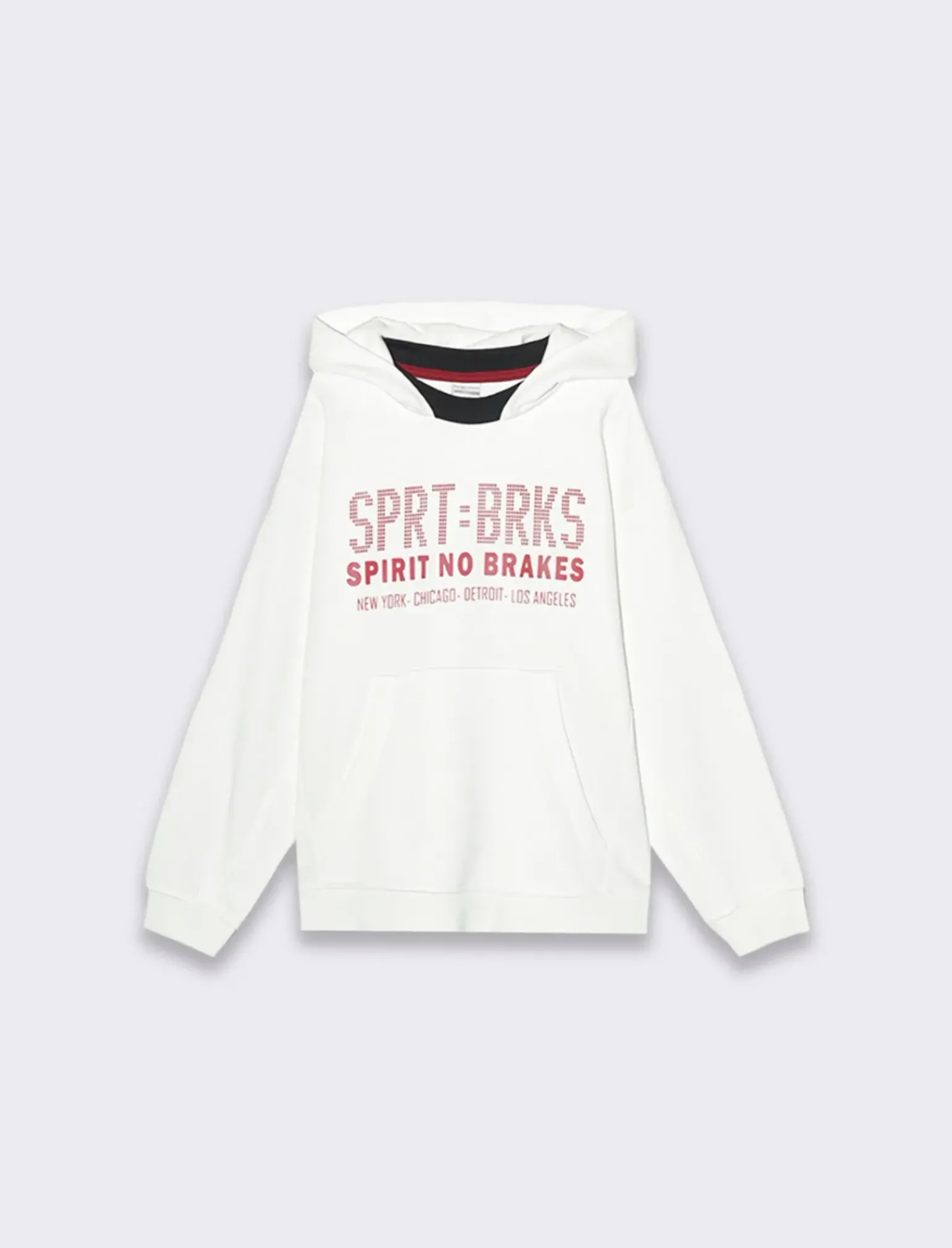 La felpa con cappuccio e marsupio, arricchita da una stampa frontale e collo in rib a contrasto, è perfetta per chi cerca un look deciso e alla moda. La vestibilità over aggiunge un tocco moderno e rilassato, ideale per un aspetto casual ma ricercato. Il prodotto è di colore Bianco sporco