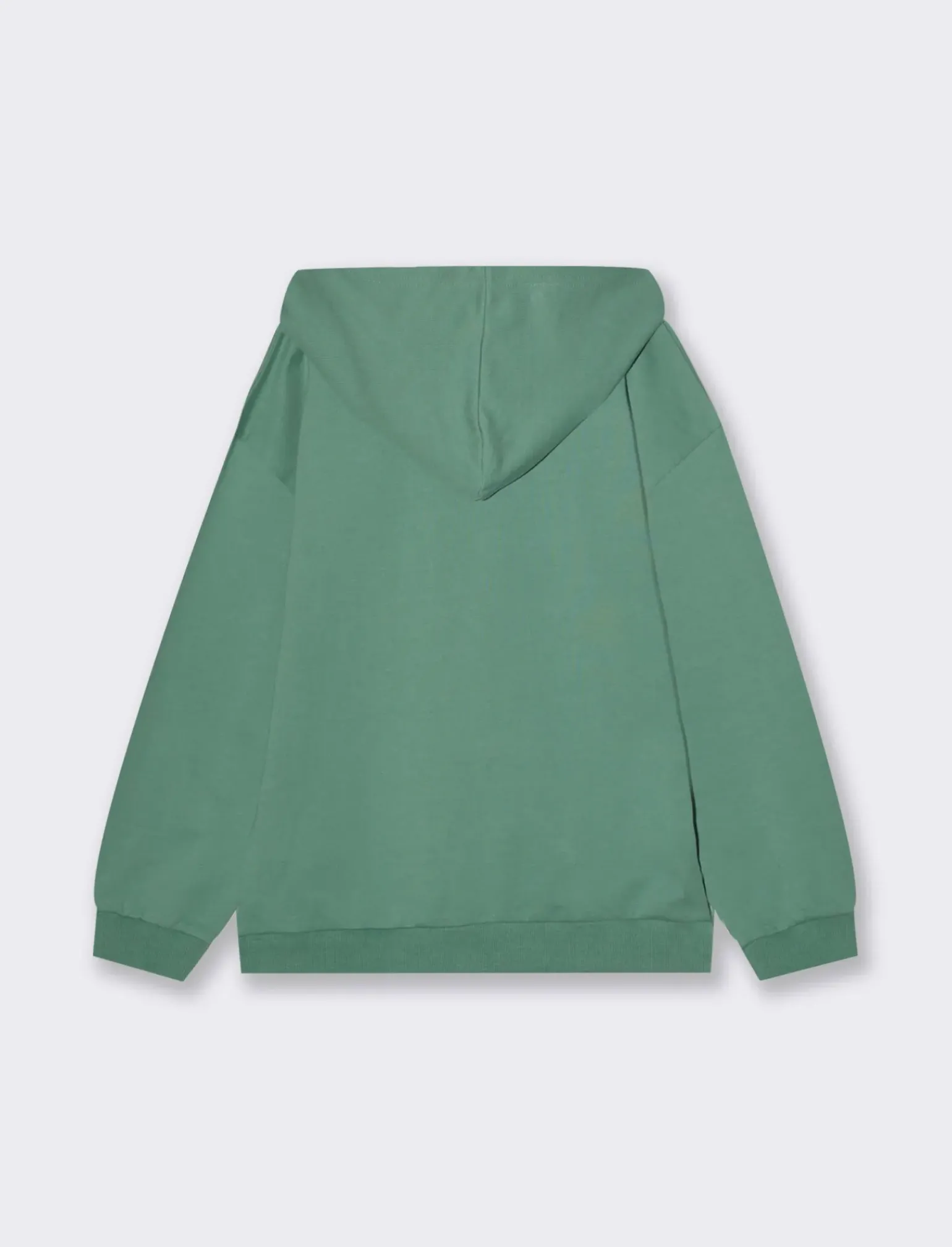 La parte anteriore è arricchita da una stampa accattivante che aggiunge un tocco di personalità. La vestibilità è regular, il che significa che non è né troppo aderente né troppo larga, garantendo una libertà di movimento ottimale. Questo capo è perfetto sia per la scuola che per il tempo libero, offrendo un look casual ma curato. Il tessuto è morbido e resistente, ideale per affrontare le giornate più fresche con stile e comodità. Il prodotto è di colore Verde