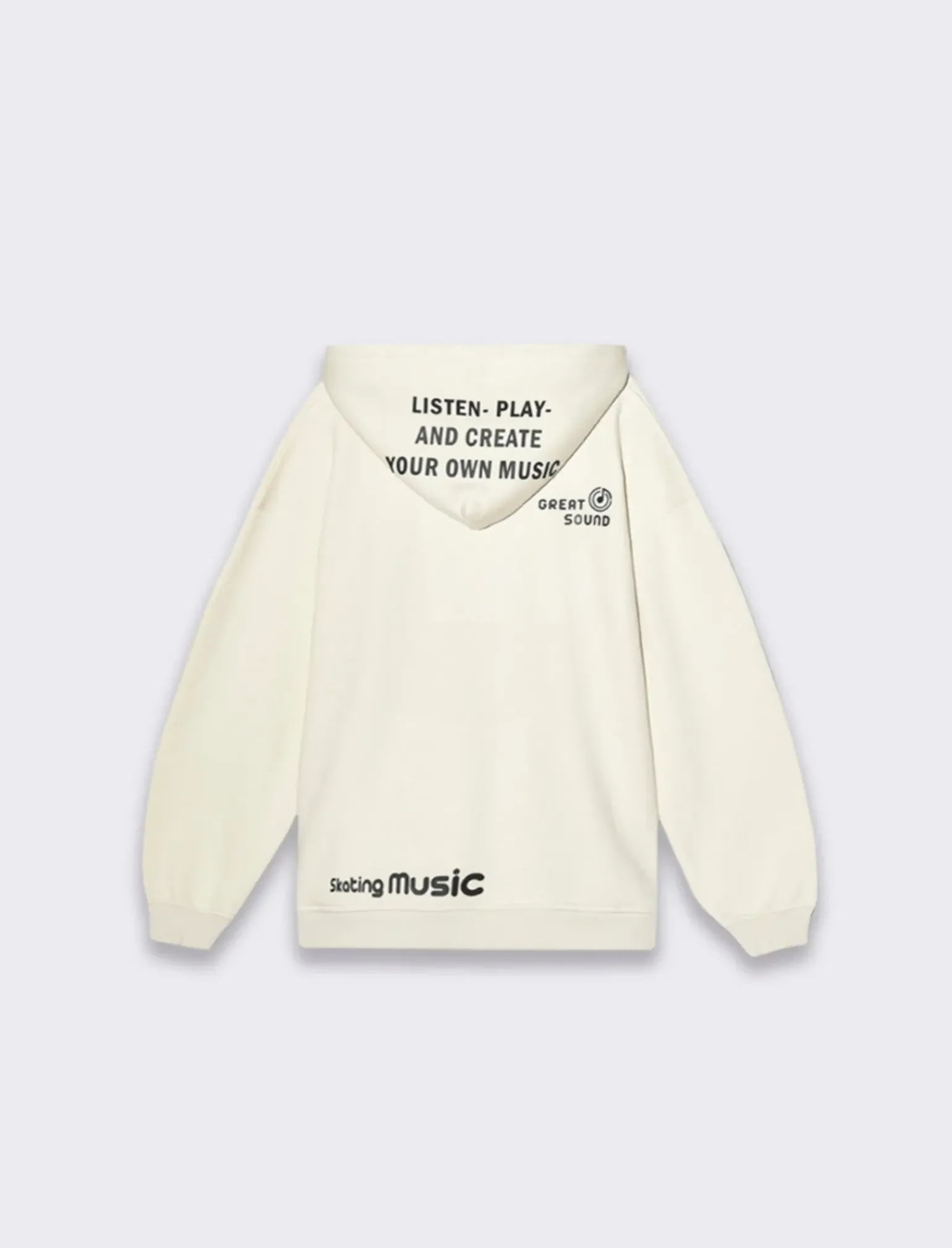 Felpa oversize per bambino, perfetta per un look casual e comodo. Realizzata in morbida garza, con cappuccio e stampa frontale e sul cappuccio. Il modello oversize garantisce libertà di movimento e un tocco di stile unico. Il prodotto è di colore Bianco panna