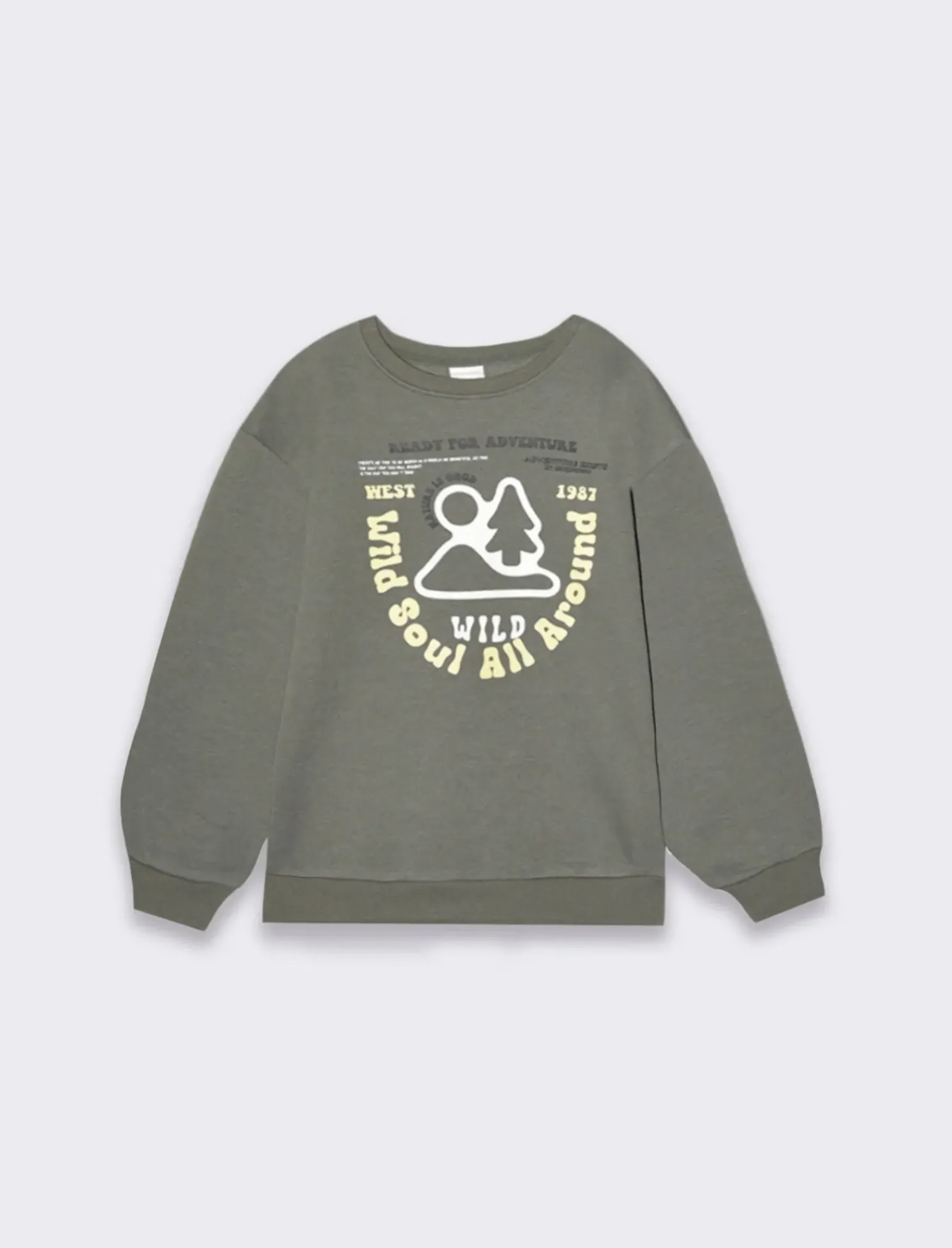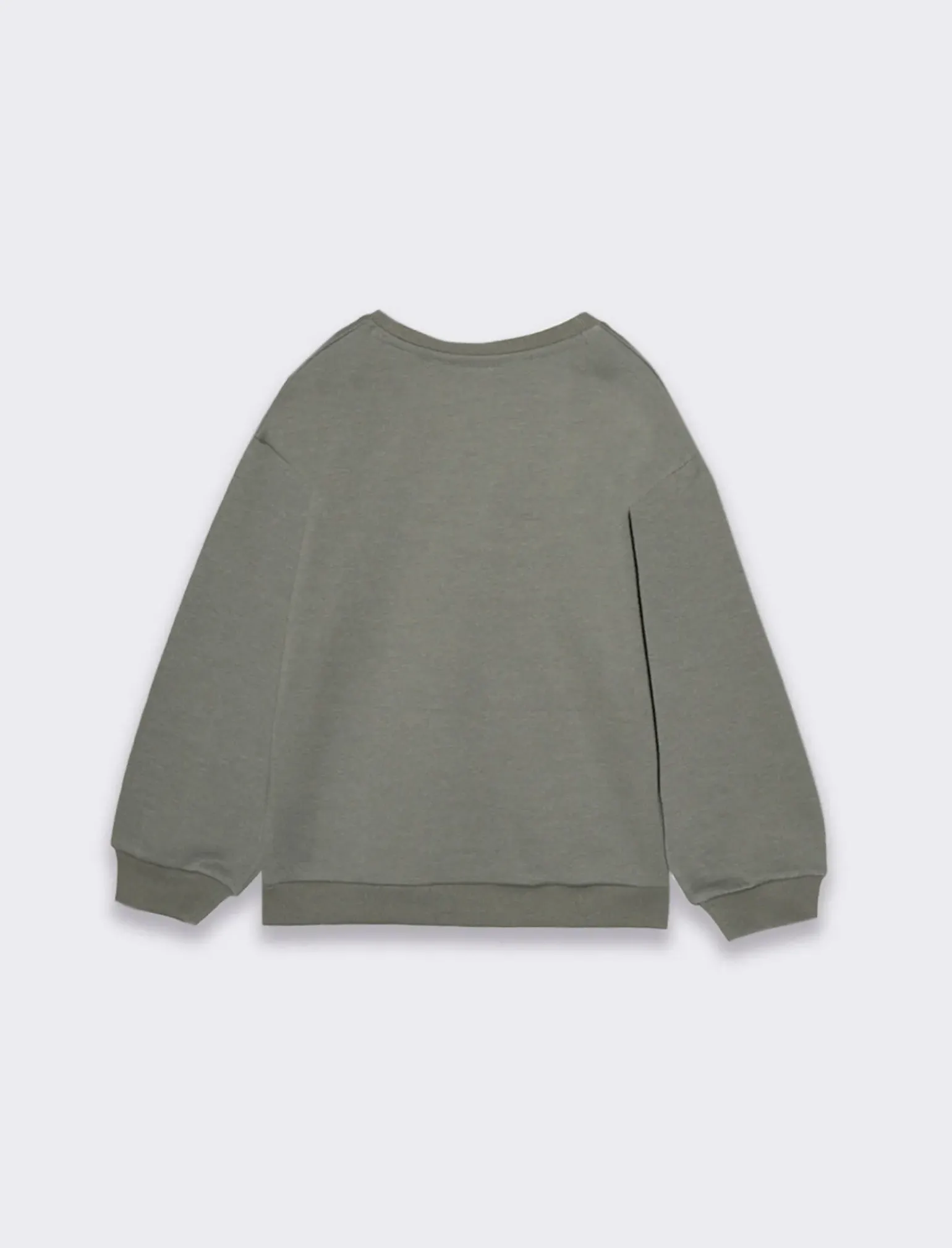 Bambino Piazza Italia Bambino|Felpe<Felpa garzata da bambino modello girocollo e stampa frontale – militare