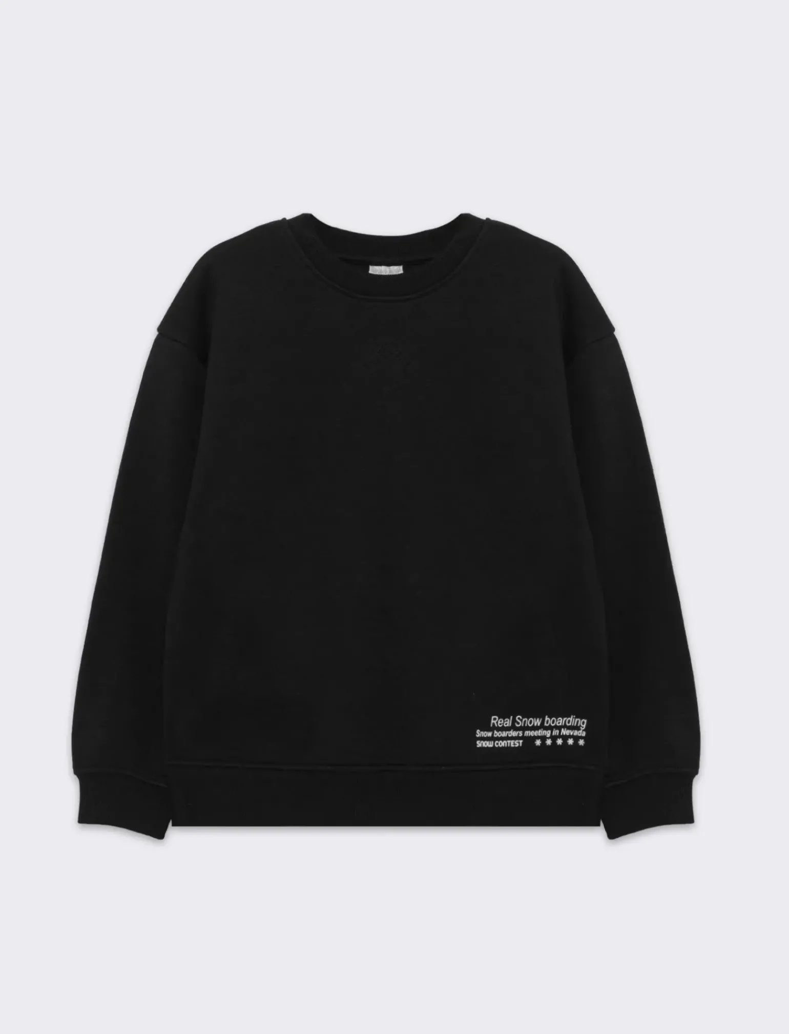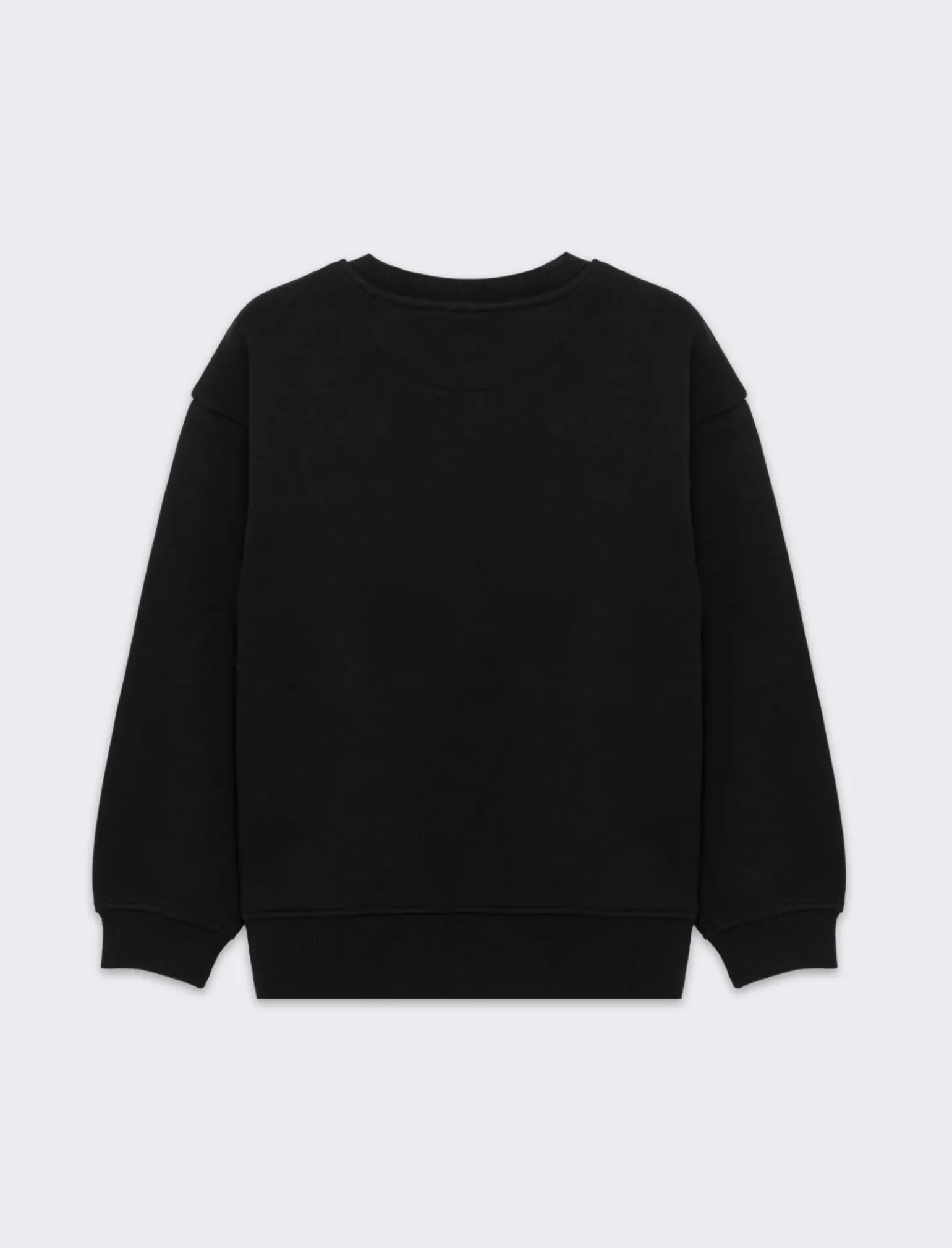Felpa da bambino modello girocollo garzata tinta unita. Fondo corpo e maniche in costine in tono. Stampa piccola sul davanmti. Ideale per qualsiasi occasione. Il prodotto è di colore Nero
