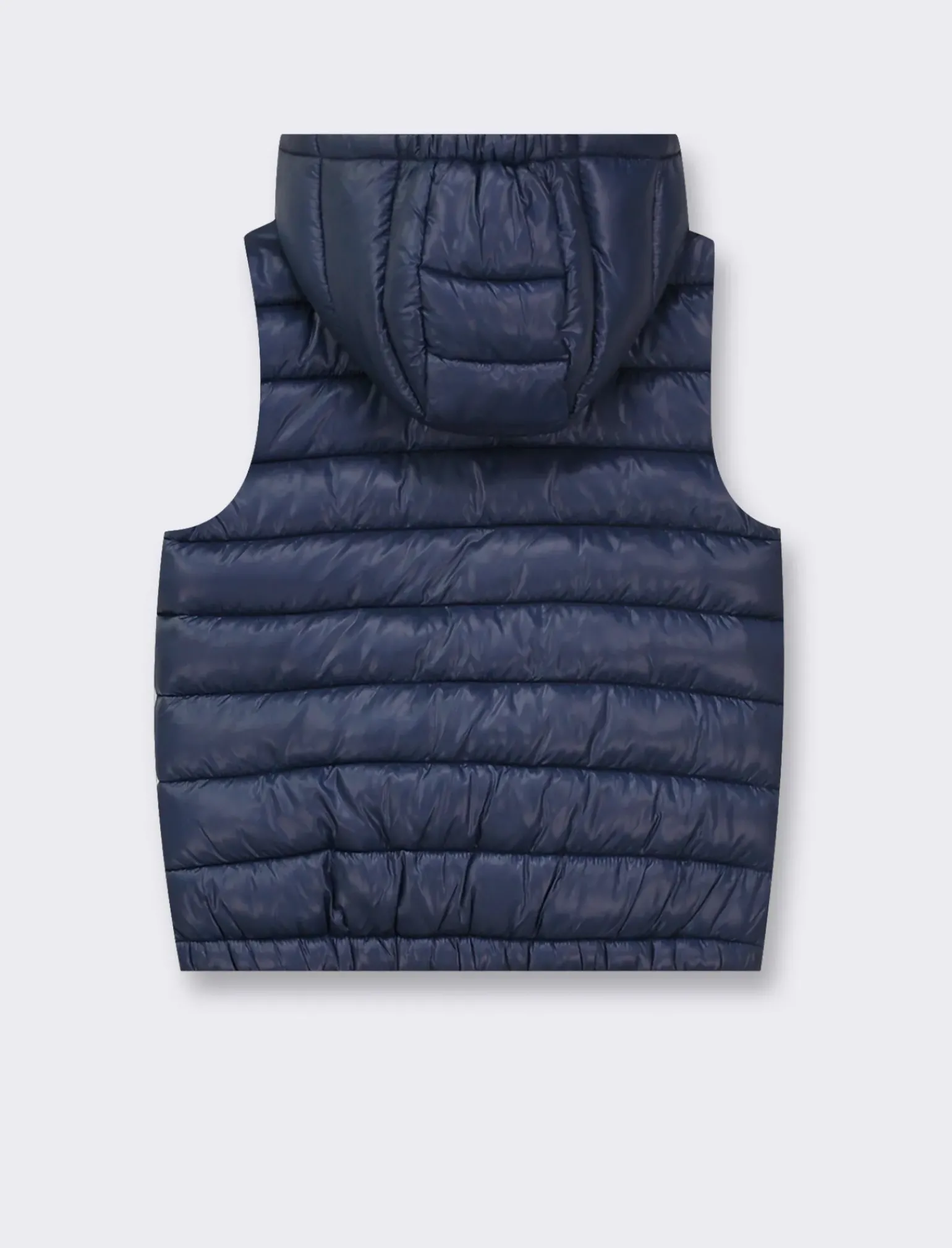 Gilet imbottito per bambini, perfetto per proteggerli dal freddo in autunno. Leggero e confortevole, dotato di cappuccio e apertura con zip frontale. Ideale per giocare all’aria aperta senza rinunciare al calore e alla comodità. Il prodotto è di colore Blu