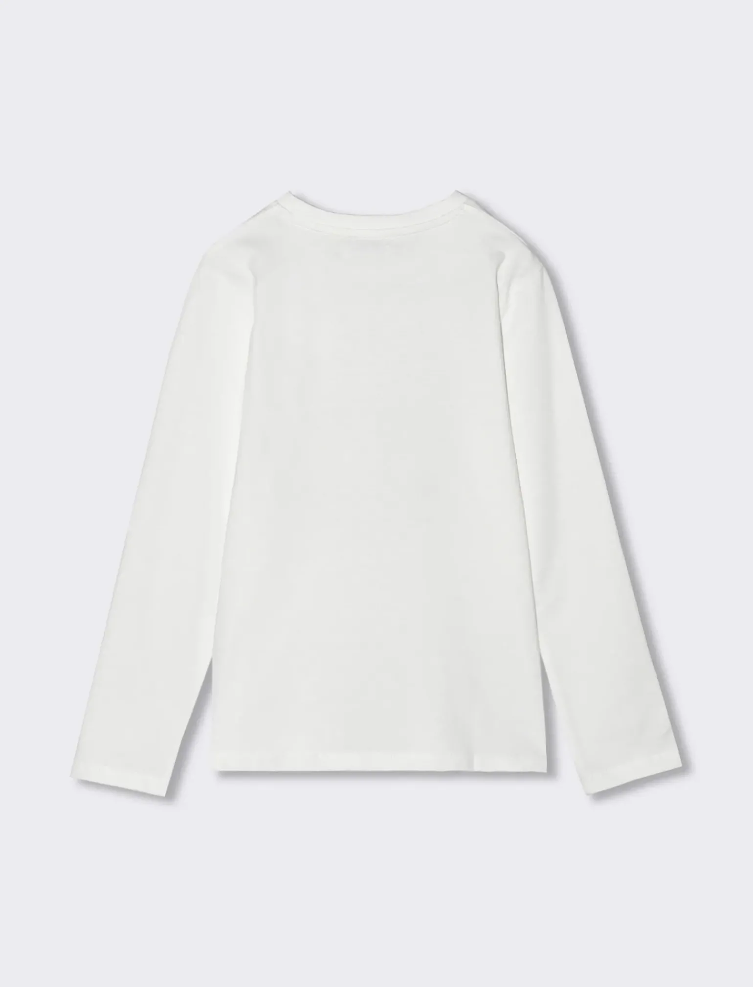 T-shirt a manica lunga da bambino in morbido cotone, perfetta per il tempo libero. Disponibile in 4 vivaci modelli colorati con stampa divertente sul davanti. Un capo comodo e alla moda per i più piccoli, ideale per giocare e divertirsi in totale libertà. Il prodotto è di colore Bianco sporco