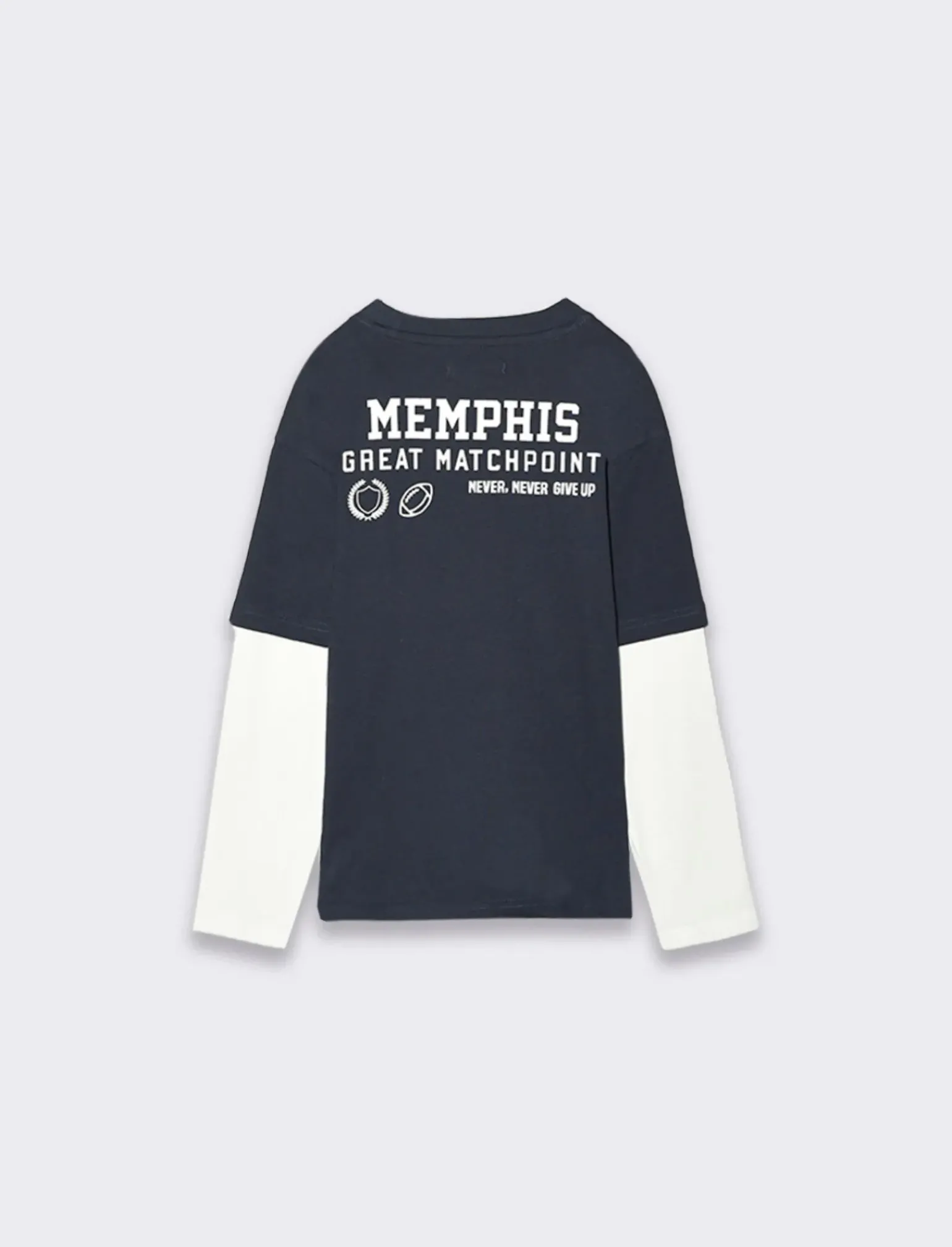 Bambino Piazza Italia Bambino|Maglieria<T-shirt doppia manica, vestibilità over modello stile college con stampa e applicazioni –