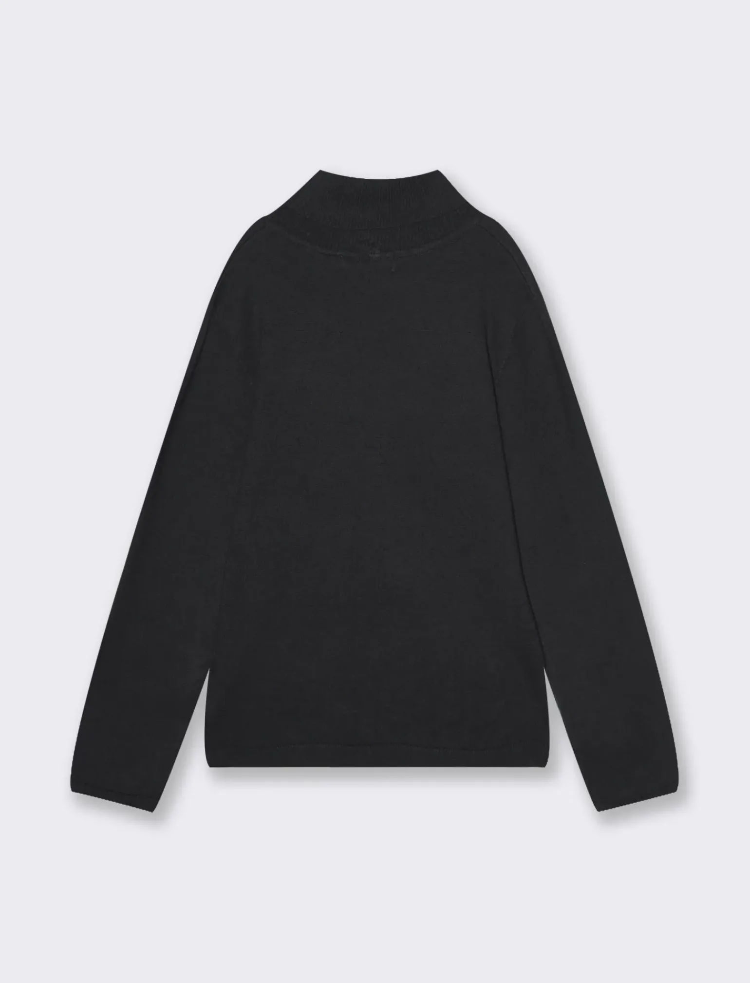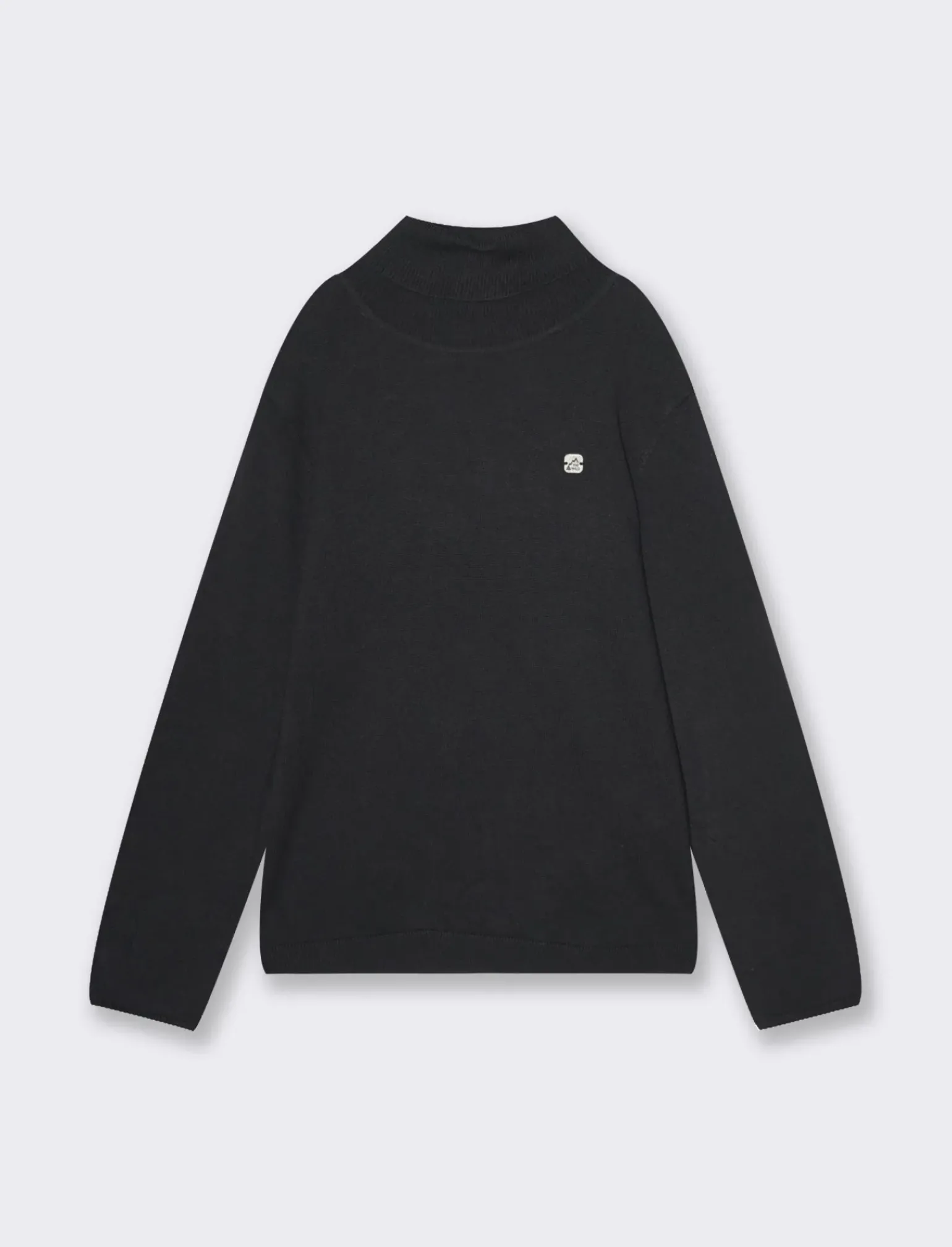 Tricot da bambino tinta unita modello collo alto. Collo, fondo maniche e corpo in costina in tono. Applicazione placchetta frontale. Modello casual, ideale per ogni occasione. Il prodotto è di colore Nero