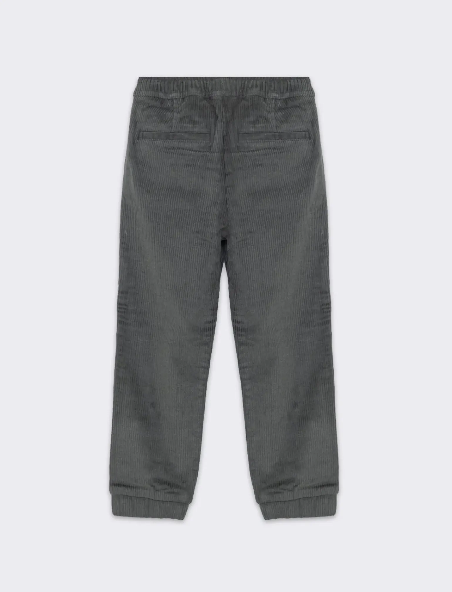 Pantalone jogger in morbido velluto per bambini, realizzato in cotone elastico per garantire massima comodità. Dotato di coulisse in vita e costina al fondo, questo capo è perfetto per il tempo libero e le giornate all’aria aperta. Un mix di stile e praticità per i più piccoli! Il prodotto è di colore Verde militare