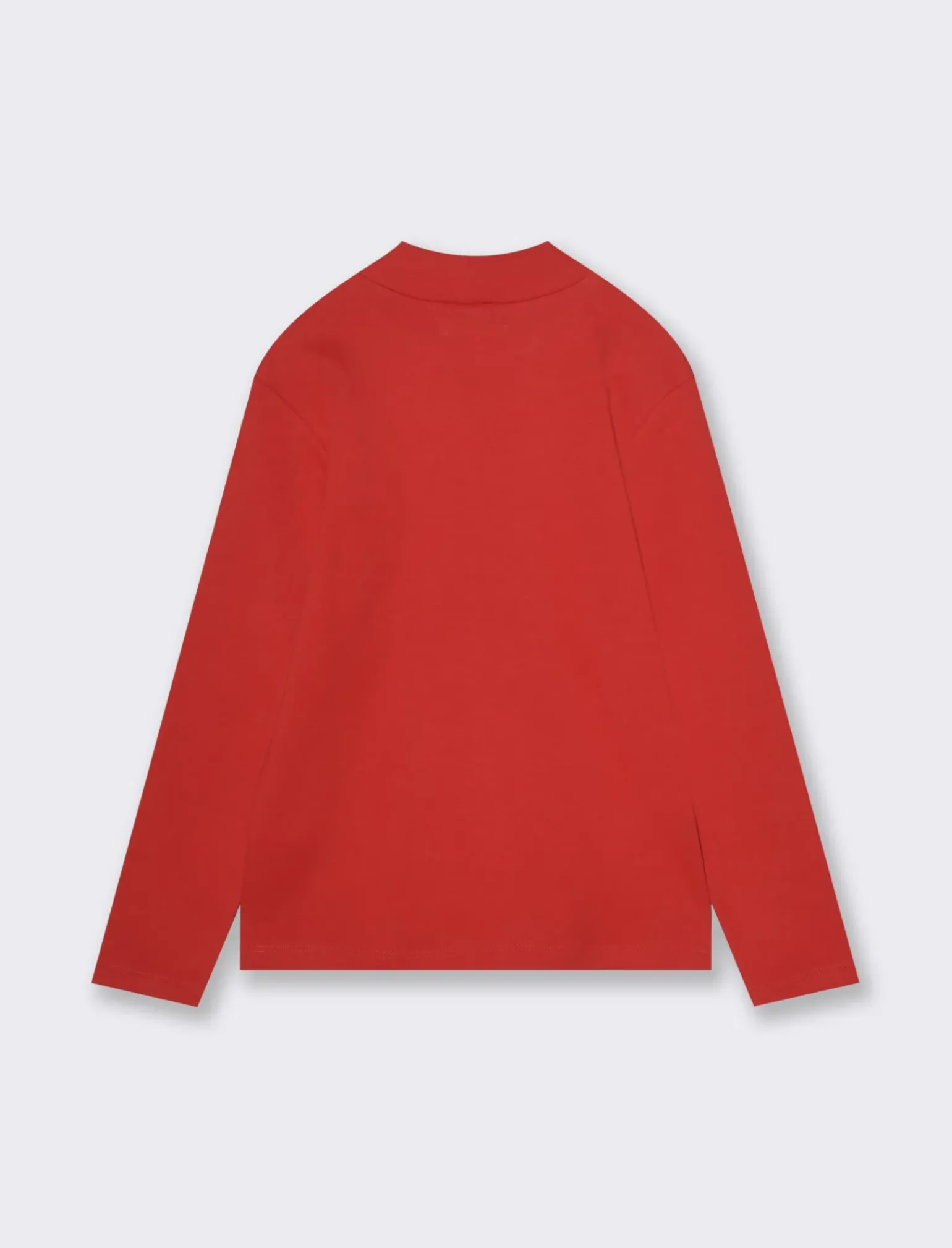 T-shirt modello dolce vita in caldo cotone, tinta unita con ricamo in tono. Ideale per le giornate più uggiose sia per la scuola che per il tempo libero. Il prodotto è di colore Rosso