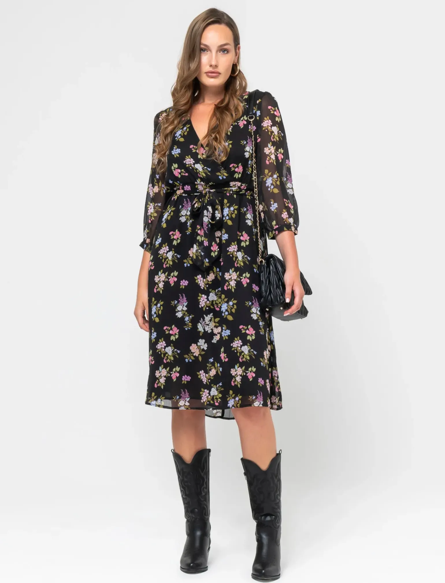Vestito midi stampato donna con manica 3/4, perfetto per un look casual ma curato. Il design elegante e la vestibilità comoda lo rendono adatto a diverse occasioni, dalla giornata in ufficio alle serate fuori. Il dettaglio dell’elastico in vita e della fusciacca aggiunge un tocco di femminilità e stile al capo. Il prodotto è di colore var 2