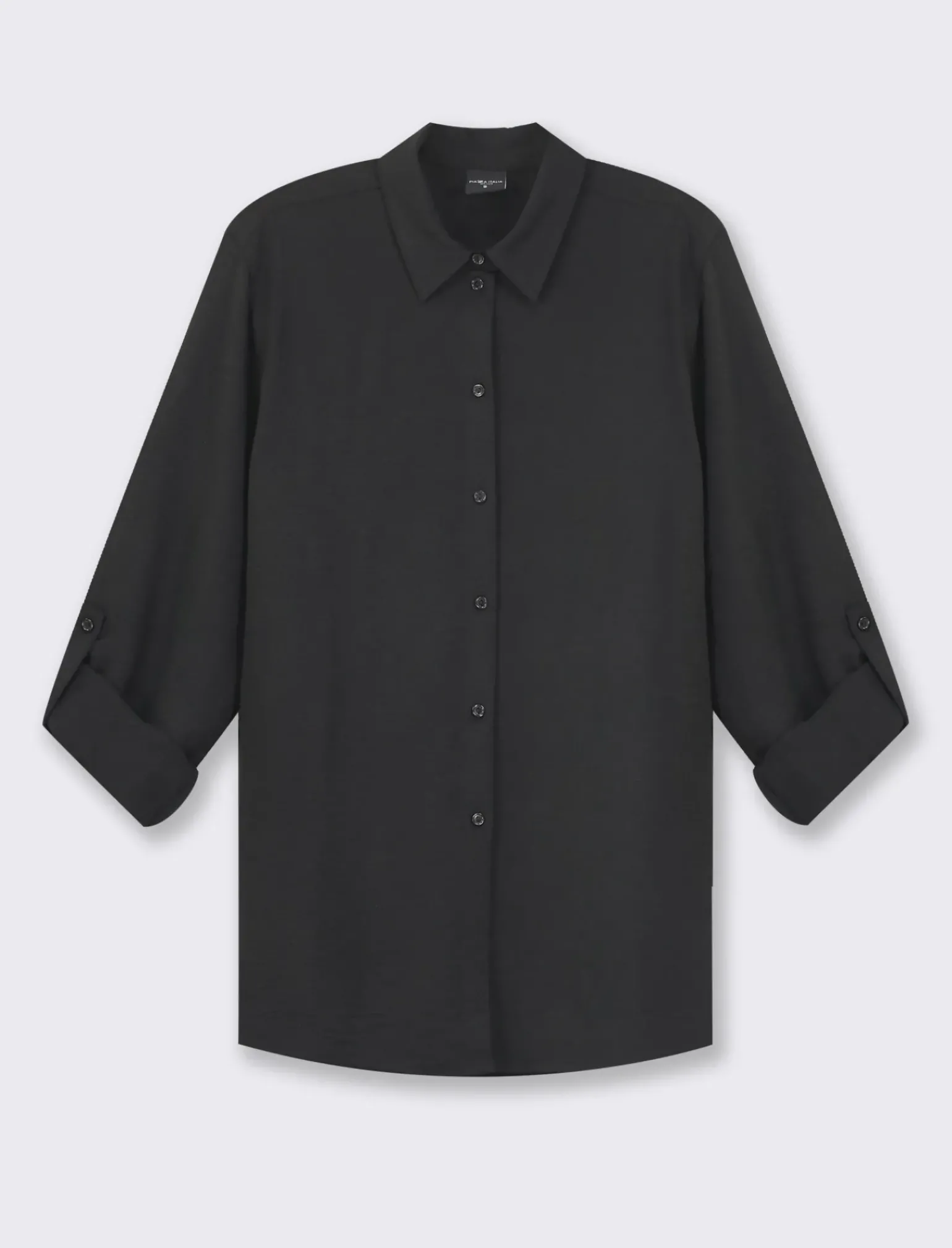 Camicia manica lunga donna in tessuto fluido, perfetta per un look casual ma curato. Il taglio moderno con spalla scesa e alette per risvoltare la manica conferisce un tocco di originalità. Disponibile in diverse tonalità, ideale per completare il tuo outfit in ogni occasione. Il prodotto è di colore Nero
