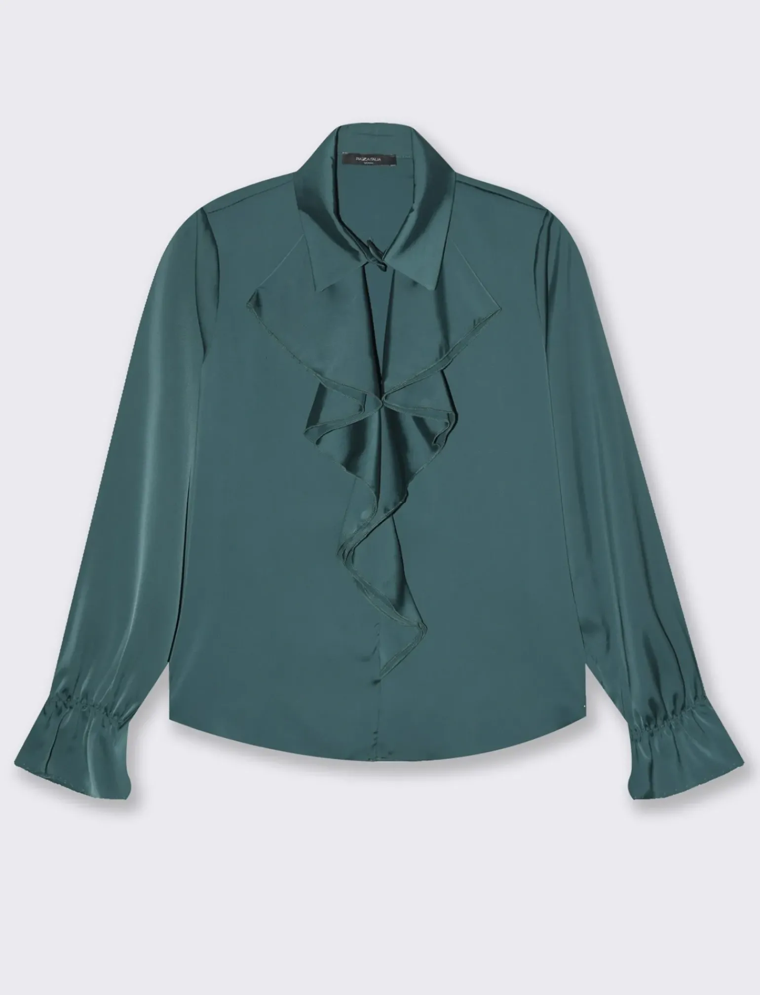 Casacca elegante e versatile, realizzata in un tessuto leggero e confortevole. Questa casacca presenta un arriccio delicato lungo il busto, che aggiunge un tocco di femminilità e movimento al capo. Le maniche sono lunghe e dotate di elastici ai polsi, creando un effetto leggermente sbuffato che dona un’aria romantica e sofisticata. Il prodotto è di colore Verde