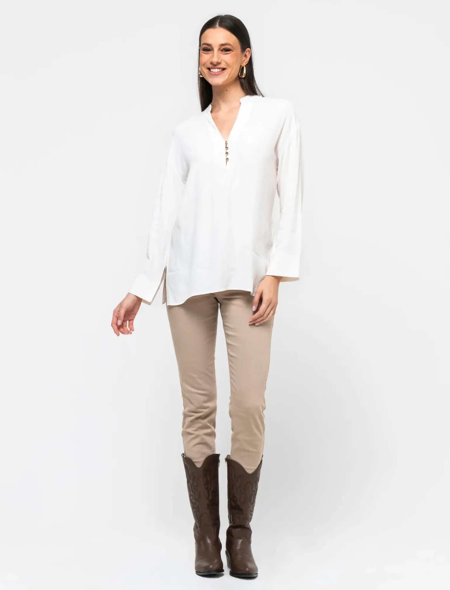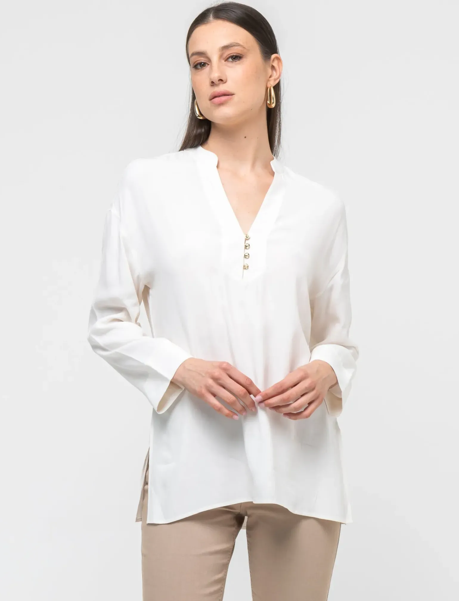 Casacca stampata per donna, ideale per un look casual ma curato. Realizzata in tessuto crepe di viscosa, garantisce comfort e vestibilità ottimale. Le maniche 3/4 la rendono adatta a ogni stagione, mentre le diverse varianti disponibili permettono di scegliere il modello più adatto al proprio stile. Il prodotto è di colore Avorio