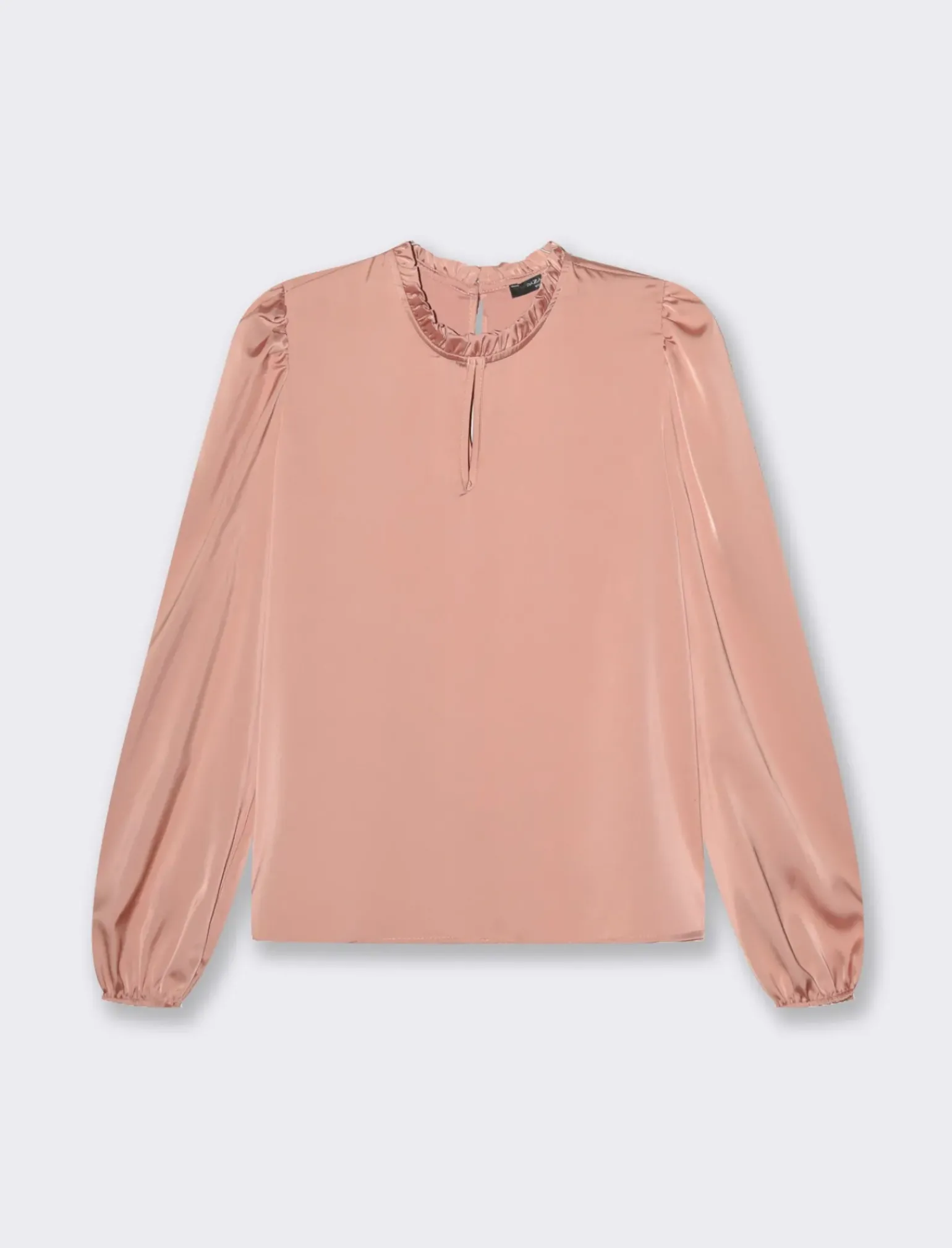 Camicia manica lunga da donna, caratterizzata da un elegante girocollo con rouches che aggiunge un tocco di femminilità. La particolare apertura a goccia sul retro conferisce un elemento di sofisticatezza, rendendo questo capo versatile per diverse occasioni. Realizzata in un tessuto morbido e leggero, è ideale per il giorno e la sera, permettendo di esprimere il proprio stile con raffinatezza. Perfetta da abbinare a pantaloni o gonne. Il prodotto è di colore Rosa