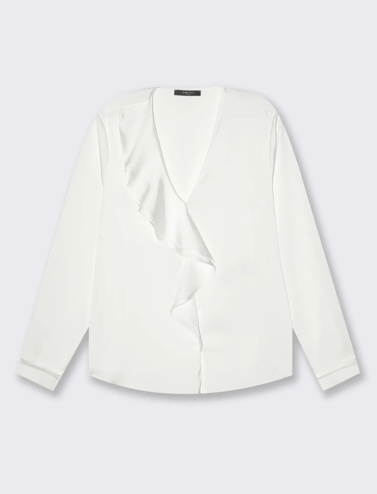 Donna Piazza Italia Donna|Camicie E Casacche<Casacca a manica lunga e scollo a V con rouches – Bianco panna