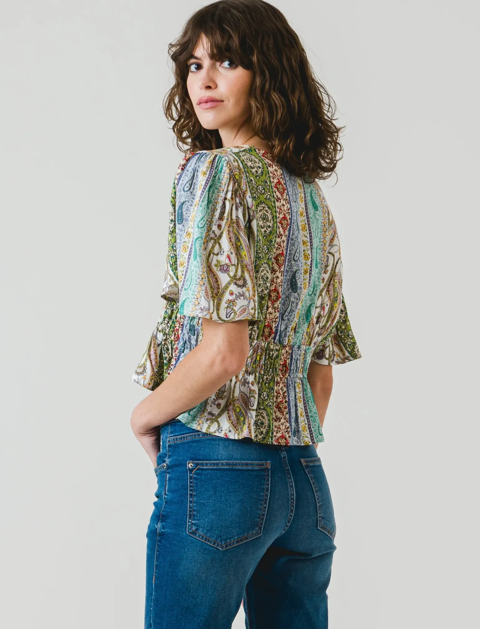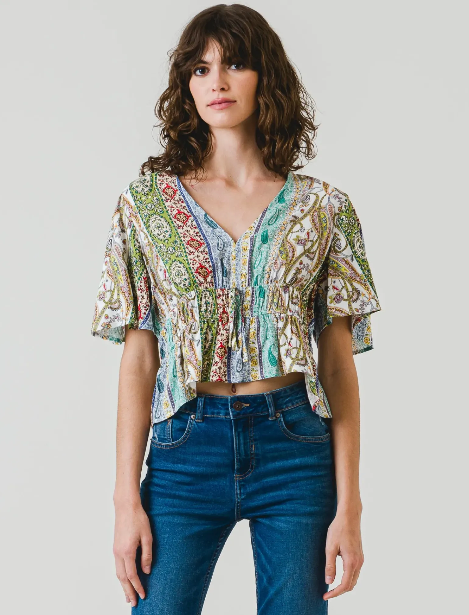 Donna Piazza Italia Donna<Casacca fantasia e unita manica corta con arriccio in vita – var 1