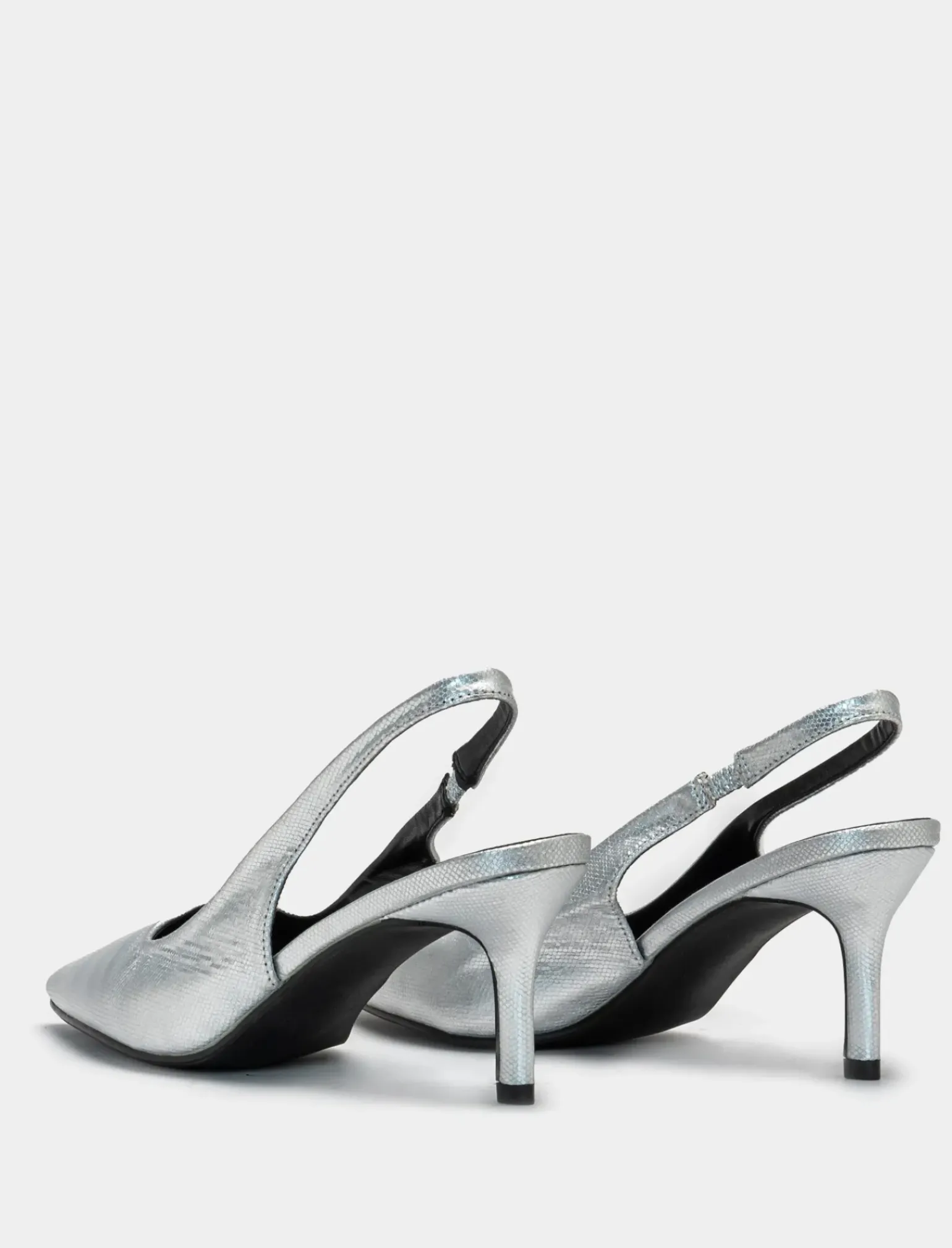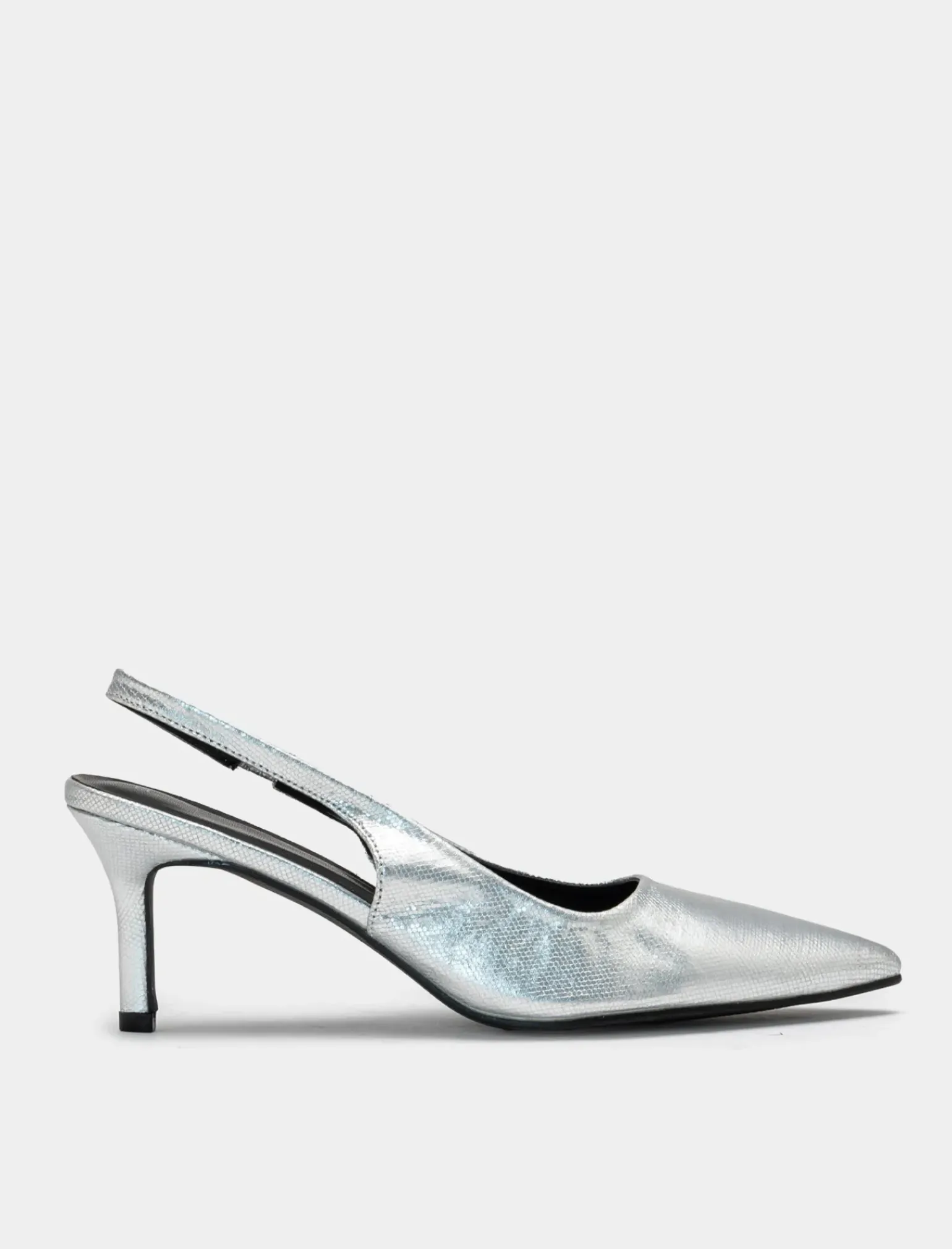 Slingback a punta in poliuretano con tacco a spillo da 70 mm, disponibili in due varianti di colore. Ideali per un look elegante e raffinato, perfette per completare il tuo outfit in ogni occasione. Realizzate con materiali di alta qualità, garantiscono comfort e stile senza rinunciare alla praticità. Il prodotto è di colore Argento