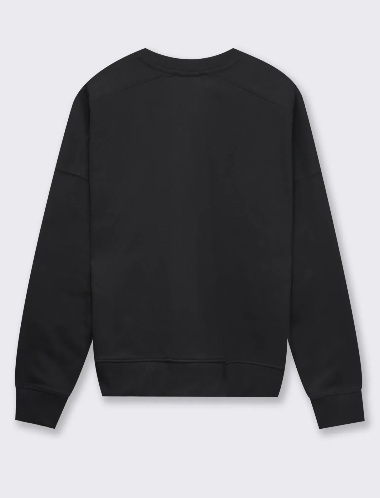 Felpa leggermente garzata girocollo donna, perfetta per un look casual e comodo. La stampa sulla manica aggiunge un tocco di originalità, mentre il tessuto elastico a costina su manica e fondo garantisce una vestibilità perfetta. Il prodotto è di colore Nero
