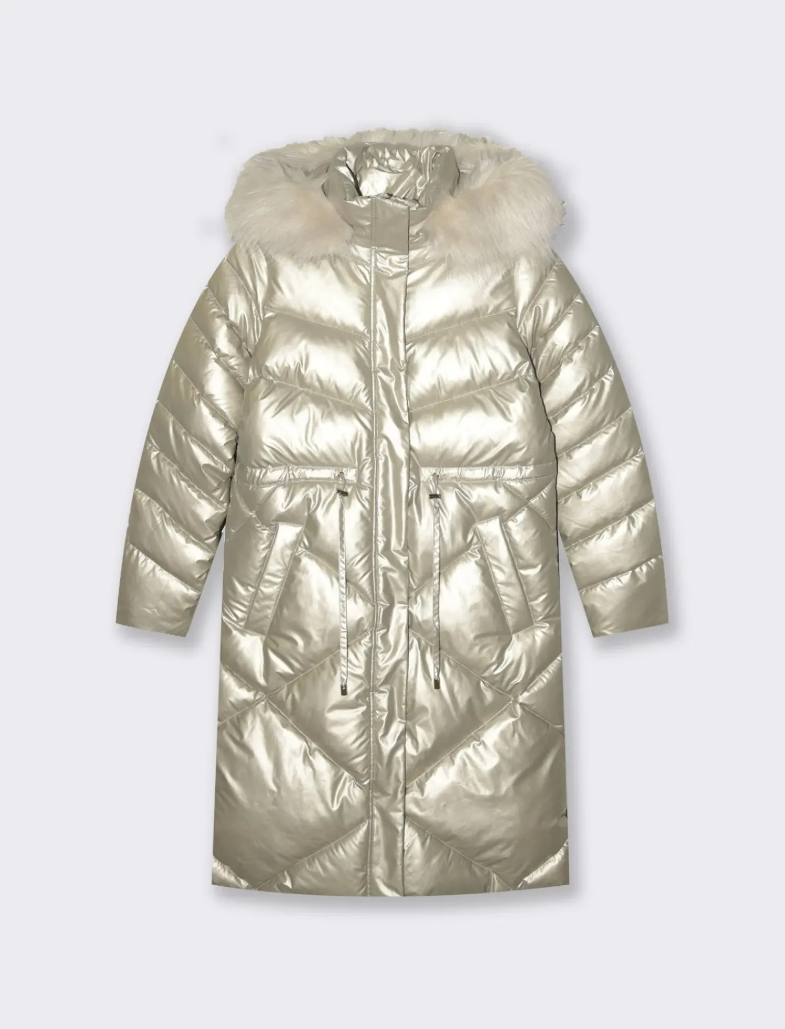 Il giaccone lungo con cappuccio per donna è un capo versatile e di tendenza, perfetto per affrontare le giornate più fredde con stile. Il bordo in finta pelliccia removibile aggiunge un tocco di eleganza e comfort, permettendo di personalizzare il look. La chiusura a zip garantisce praticità, mentre la culisse in vita permette di esaltare la silhouette, creando una vestibilità impeccabile. Il prodotto è di colore Avorio