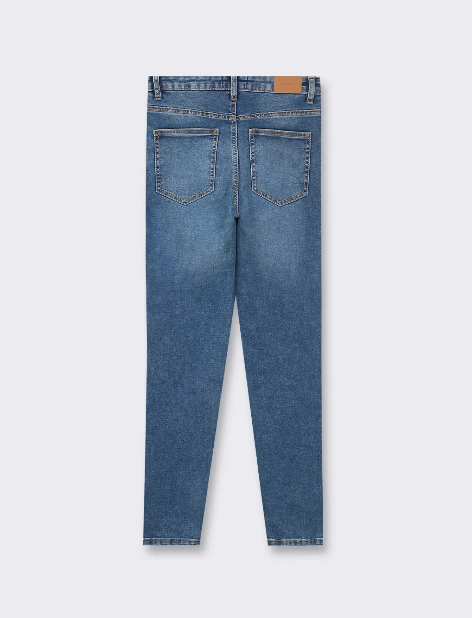 Jeans basic a 5 tasche, perfetti per ogni occasione. Con vita alta e vestibilità skinny, ti faranno sentire comoda e alla moda in ogni momento della giornata. La chiusura con zip e bottone garantisce praticità e sicurezza. Un capo essenziale nel guardaroba di ogni donna moderna. Il prodotto è di colore DENIM SCURO