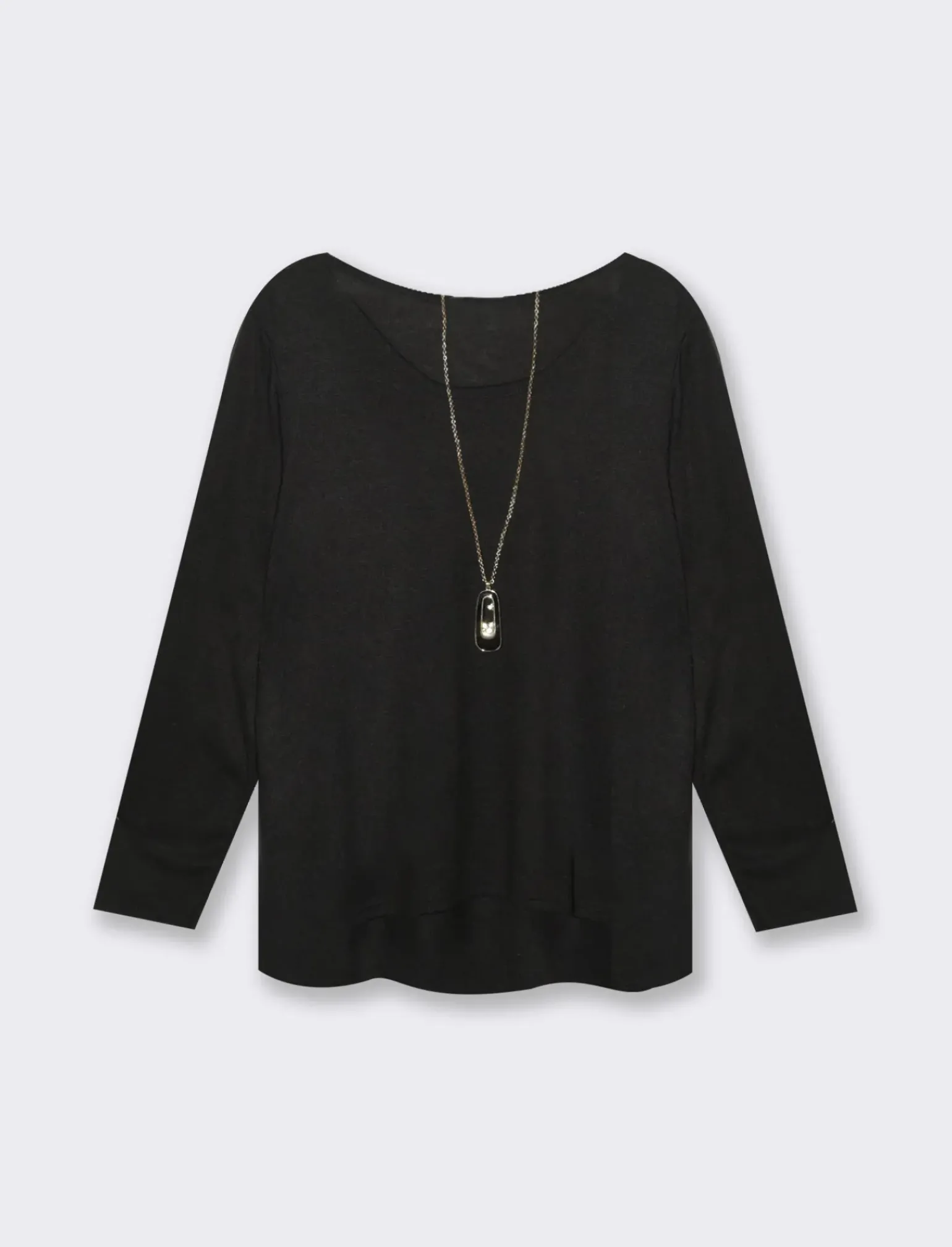Questa casacca presenta maniche lunghe, perfette per le stagioni più fresche o per un look più formale. Le maniche possono essere leggermente ampie o aderenti, a seconda del design, e spesso terminano con polsini elasticizzati o bottoni per un tocco di raffinatezza.Lo scollo a V è uno degli elementi distintivi di questa casacca, creando una linea che valorizza il décolleté e allunga visivamente il collo. Questo tipo di scollo è perfetto per chi desidera un look sofisticato ma non troppo formale.Un dettaglio unico di questa casacca è la collana integrata, che aggiunge un tocco di eleganza senza il bisogno di accessori aggiuntivi. Il prodotto è di colore Nero