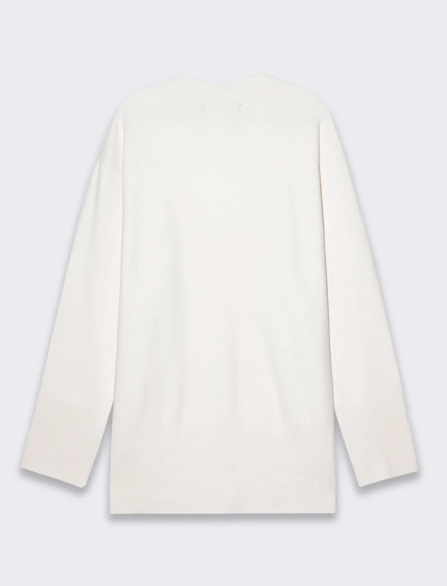 La maglia a manica lunga giro collo per donna è un capo versatile e raffinato, realizzato con una pregiata lavorazione a punto Milano. I dettagli degli spacchi laterali e il pannello posteriore più lungo conferiscono un tocco di originalità, mentre la vestibilità comoda assicura libertà di movimento. I polsi e il fondo a costina elastica donano un aspetto curato, rendendo questa maglia ideale per ogni occasione, dal lavoro al tempo libero. Il prodotto è di colore Avorio