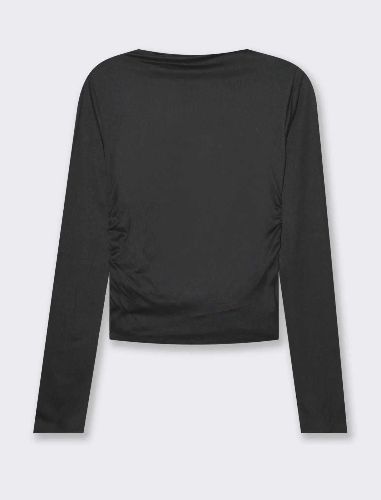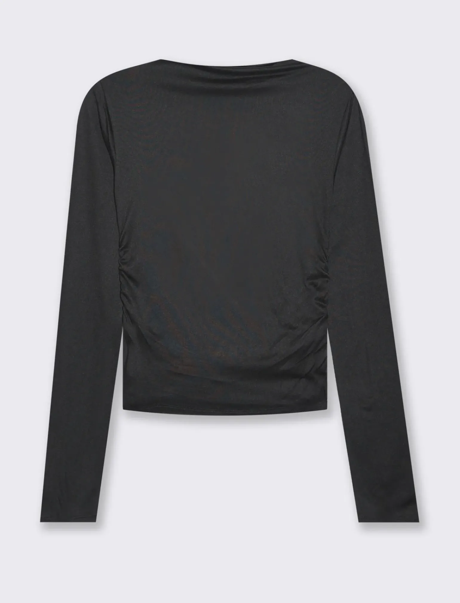 La maglia giro collo per donna è un capo versatile e raffinato, ideale per ogni occasione. Con maniche lunghe e una vestibilità slim, si adatta perfettamente al corpo, esaltando la silhouette femminile. L’arricciatura sui fianchi aggiunge un tocco di originalità, rendendo il design unico e accattivante. Disponibile in vari colori, sia stampata che tinta unita, questa maglia è perfetta per essere abbinata a jeans o gonne, per un look casual ma curato. Il prodotto è di colore Nero