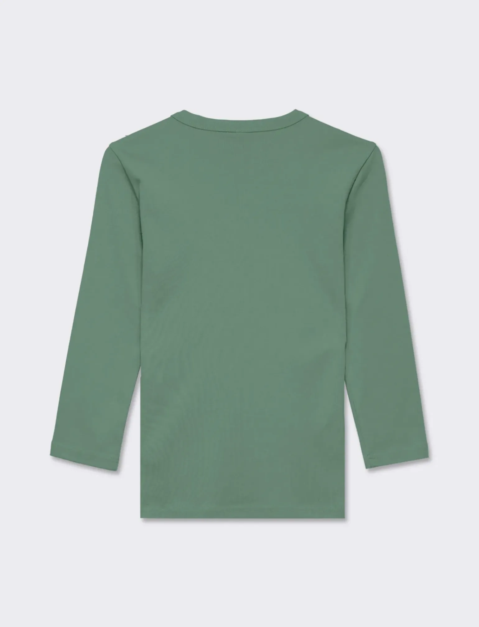 Maglietta basic girocollo manica lunga in morbido tessuto di cotone a costina, perfetta per un look casual e comodo. Disponibile in una vasta gamma di colori per soddisfare ogni stile e preferenza. Il prodotto è di colore Verde foresta