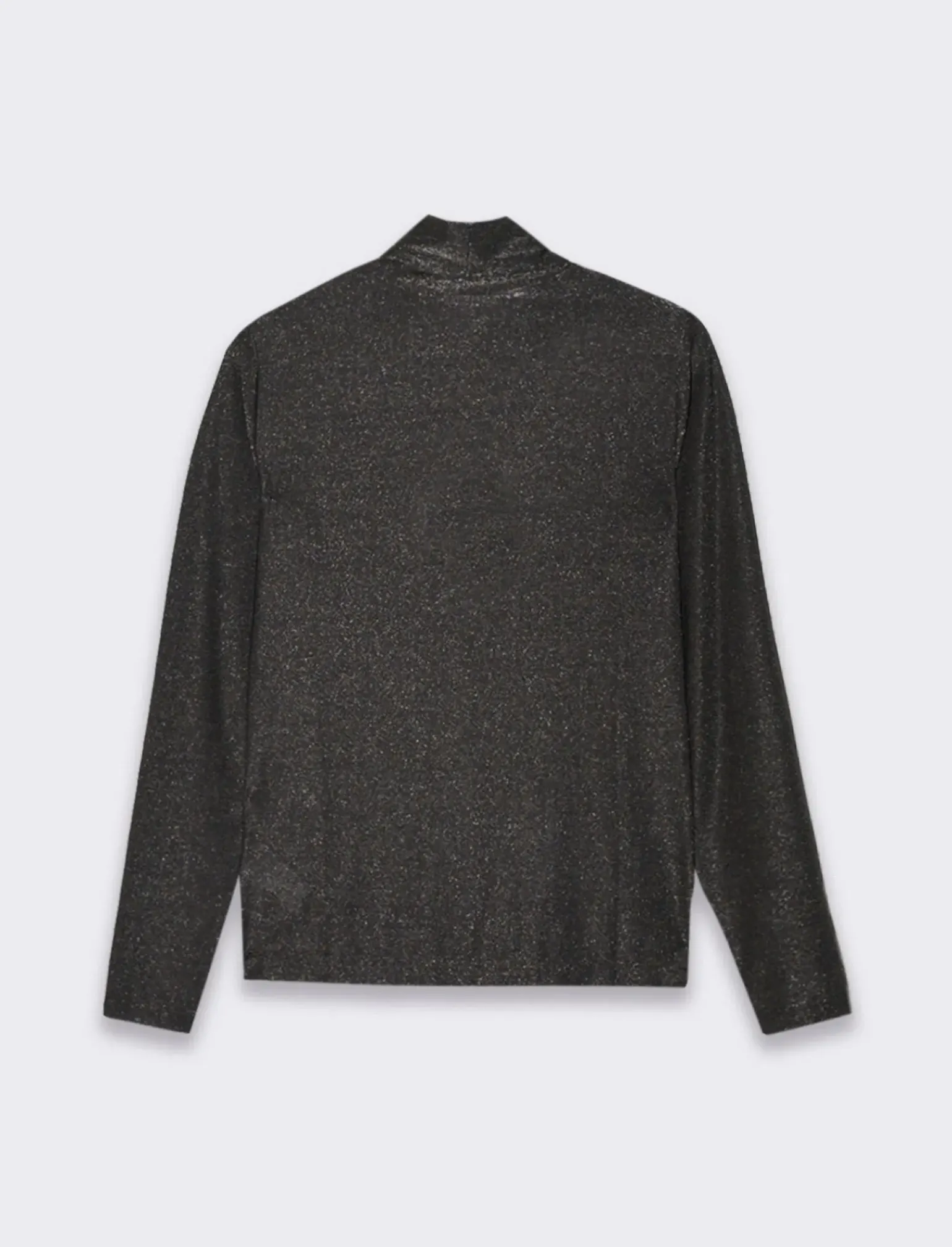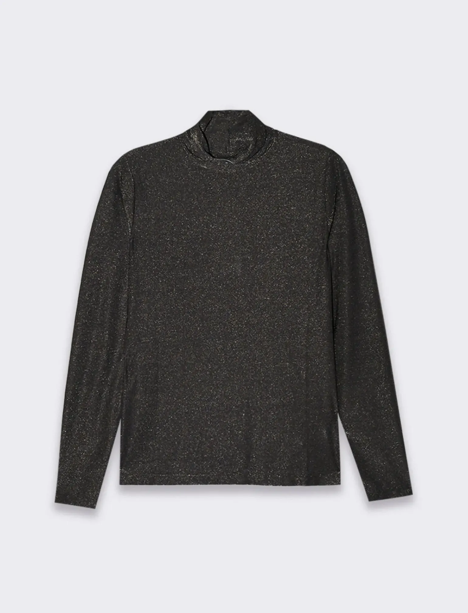 La t-shirt a collo alto per donna è un capo d’abbigliamento versatile e alla moda, realizzata con un filo effetto metallizzato che dona un tocco di eleganza. La vestibilità slim esalta la silhouette, rendendola perfetta per ogni occasione, dal casual al più sofisticato. Ideale da abbinare a jeans o gonne, questa t-shirt è un must-have nel guardaroba femminile, capace di aggiungere un pizzico di luce e originalità a qualsiasi outfit. Il prodotto è di colore Nero