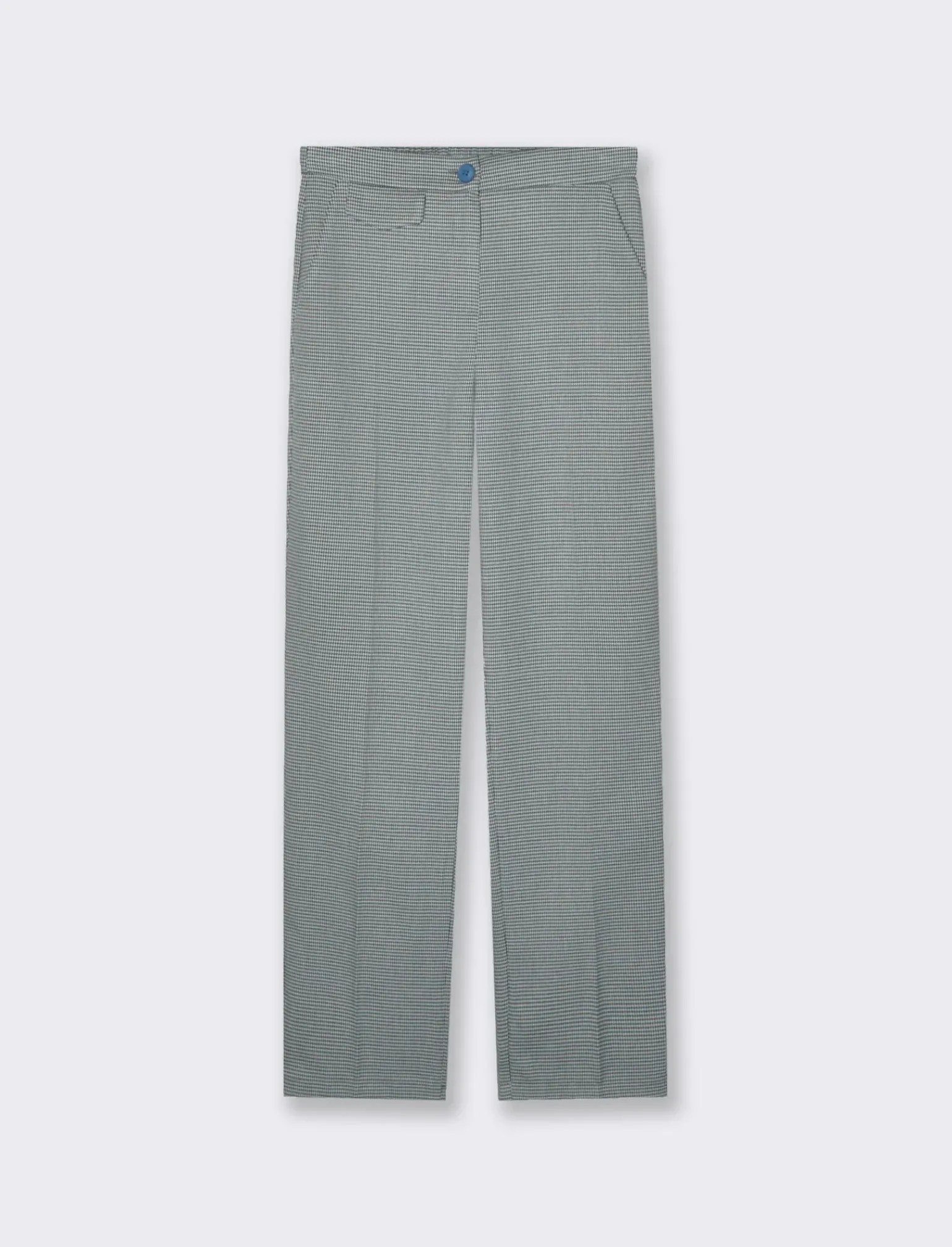 Pantalone elegante da donna con cintura in vita e pratiche tasche laterali. Realizzato con tessuto di alta qualità, perfetto per un look casual chic. Ideale per completare il tuo outfit in ogni occasione, dalla giornata in ufficio alle serate fuori con le amiche. Il prodotto è di colore Ottanio