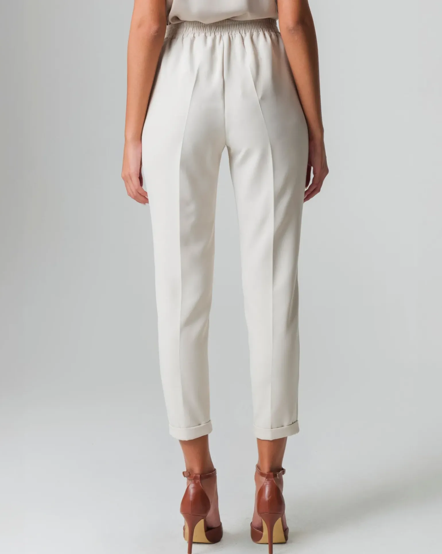 Donna Piazza Italia Donna|Pantaloni<Pantalone con elastico in vita sul retro con risvolto sulla caviglia – gesso