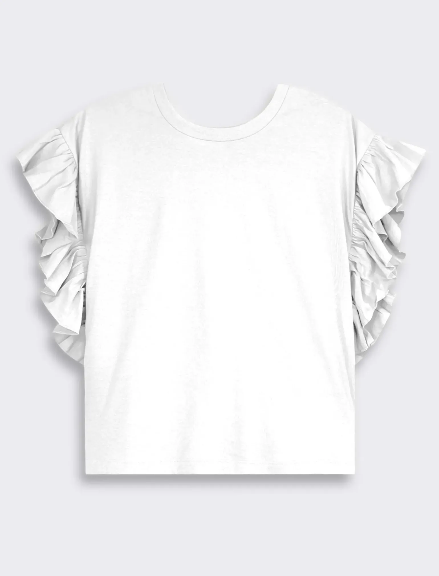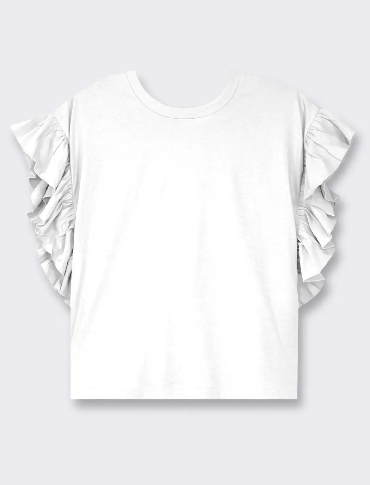 T-shirt mezza manica girocollo per donna, perfetta per un look casual ma ricercato. Realizzata in morbido tessuto, presenta un dettaglio rouches sulla manica che aggiunge un tocco di femminilità. Ideale da indossare in ogni occasione, dalla giornata in ufficio al tempo libero. Il prodotto è di colore Bianco latte