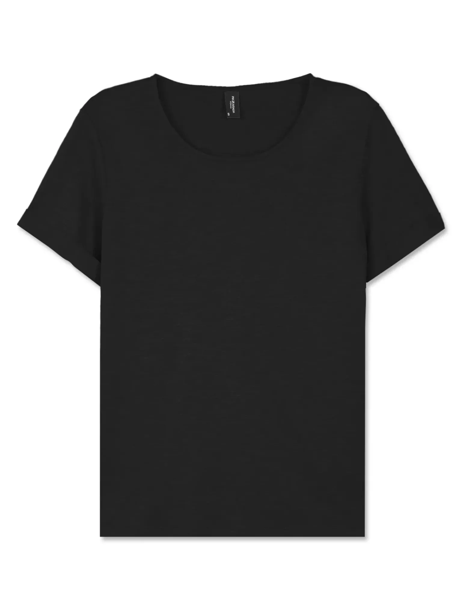 T-shirt mezza manica effetto slub donna in cotone modal, dal design moderno e casual. La vestibilità regular assicura comfort e praticità, perfetta per un look informale ma curato. Ideale per completare il tuo outfit estivo con stile e semplicità. Il prodotto è di colore Nero