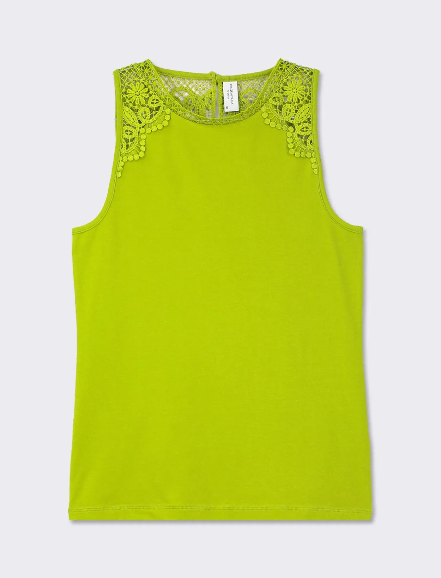 Be the first to review “Donna Piazza Italia Donna<Top paricollo con inserti in pizzo tombolo e goccia con bottone al dietro – pistacchio” Annulla risposta