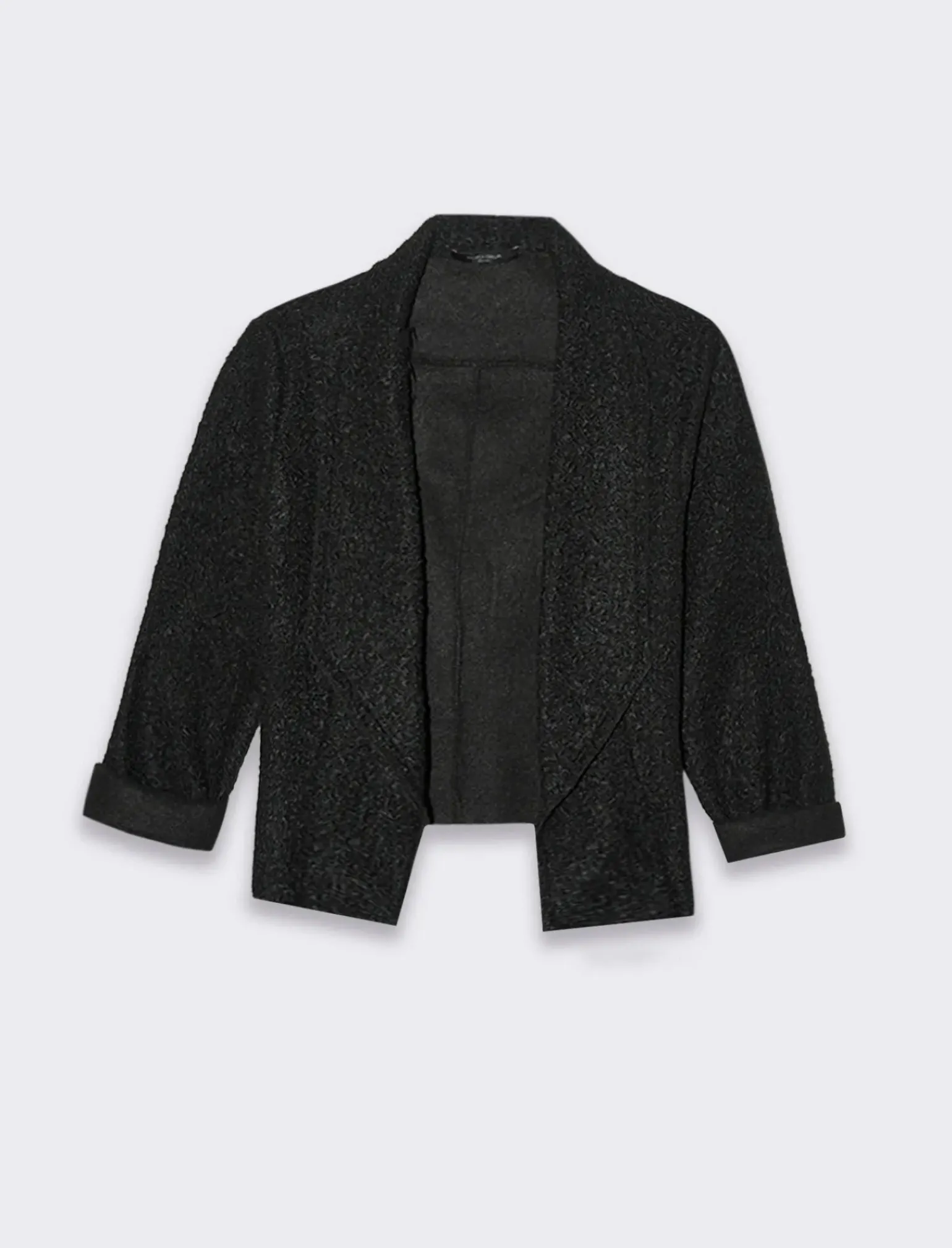 Giacca corta aperta in tessuto boucle Il prodotto è di colore Nero