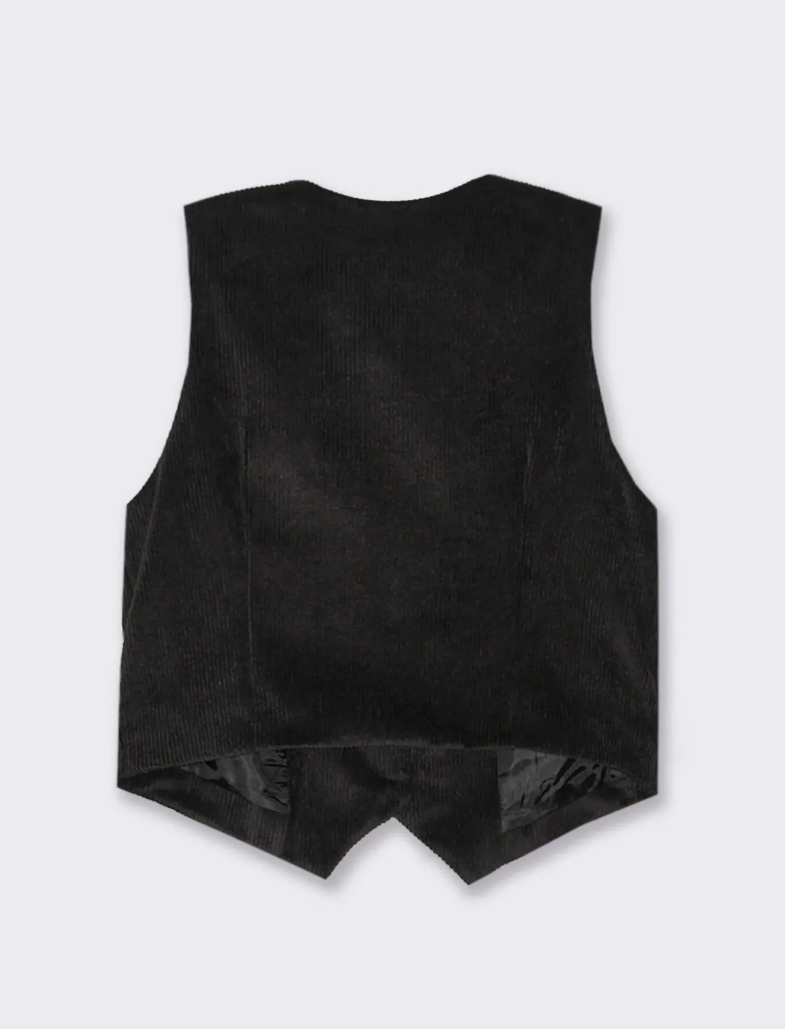 Gilet a coste realizzato in un tessuto effetto velluto, che aggiunge un tocco di eleganza e raffinatezza al tuo look. Questo gilet è caratterizzato da una chiusura con bottoni, che conferisce un aspetto classico e sofisticato.Il tessuto effetto velluto offre una texture morbida e lussuosa, mentre le coste aggiungono un elemento di struttura e stile. Questo gilet è perfetto per essere indossato sopra una camicia elegante, un maglione leggero o anche una t-shirt per un look più casual ma curato. Il prodotto è di colore Nero