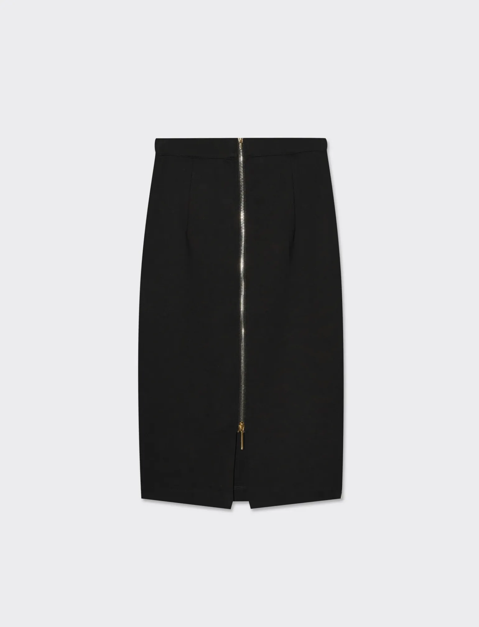 Gonna a tubino in punto milano per donna, perfetta per un look elegante e sofisticato. La vestibilità aderente mette in risalto le curve femminili, mentre la zip lunga posteriore in metallo aggiunge un tocco di modernità e raffinatezza. Il prodotto è di colore Nero