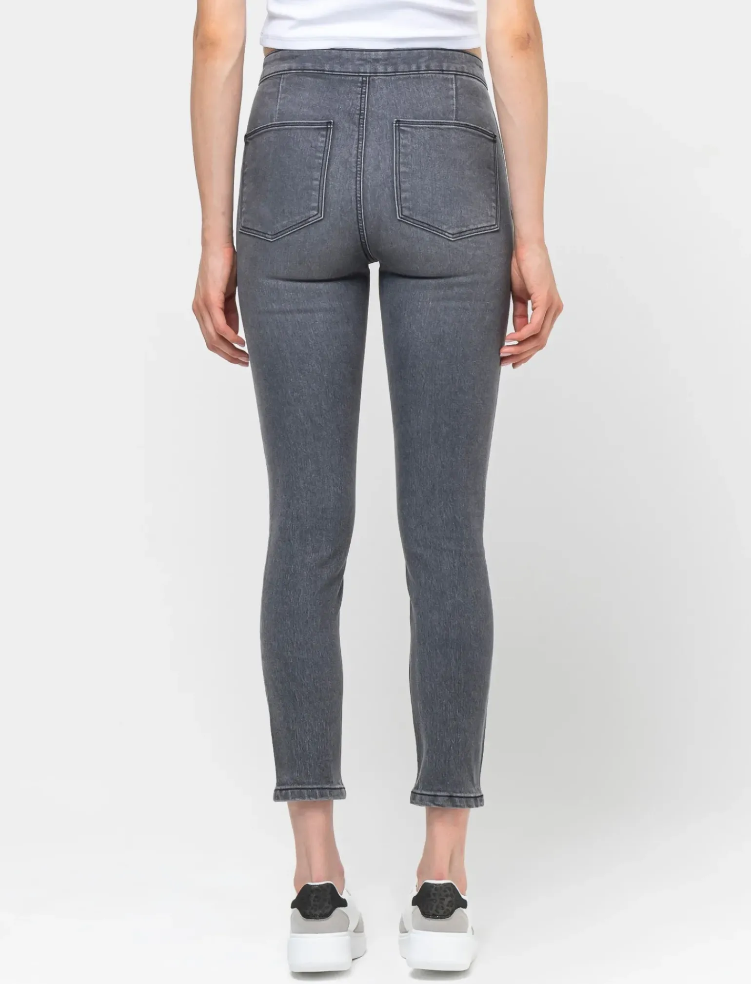 Jeggings skinny vita alta donna: un capo versatile e comodo, perfetto per ogni occasione. Realizzati in tessuto elasticizzato, questi jeggings si adattano perfettamente alla silhouette femminile. Con tasche sul retro e apertura con bottone e cerniera, sono pratici e alla moda. Disponibili in diversi colori. Il prodotto è di colore Grigio