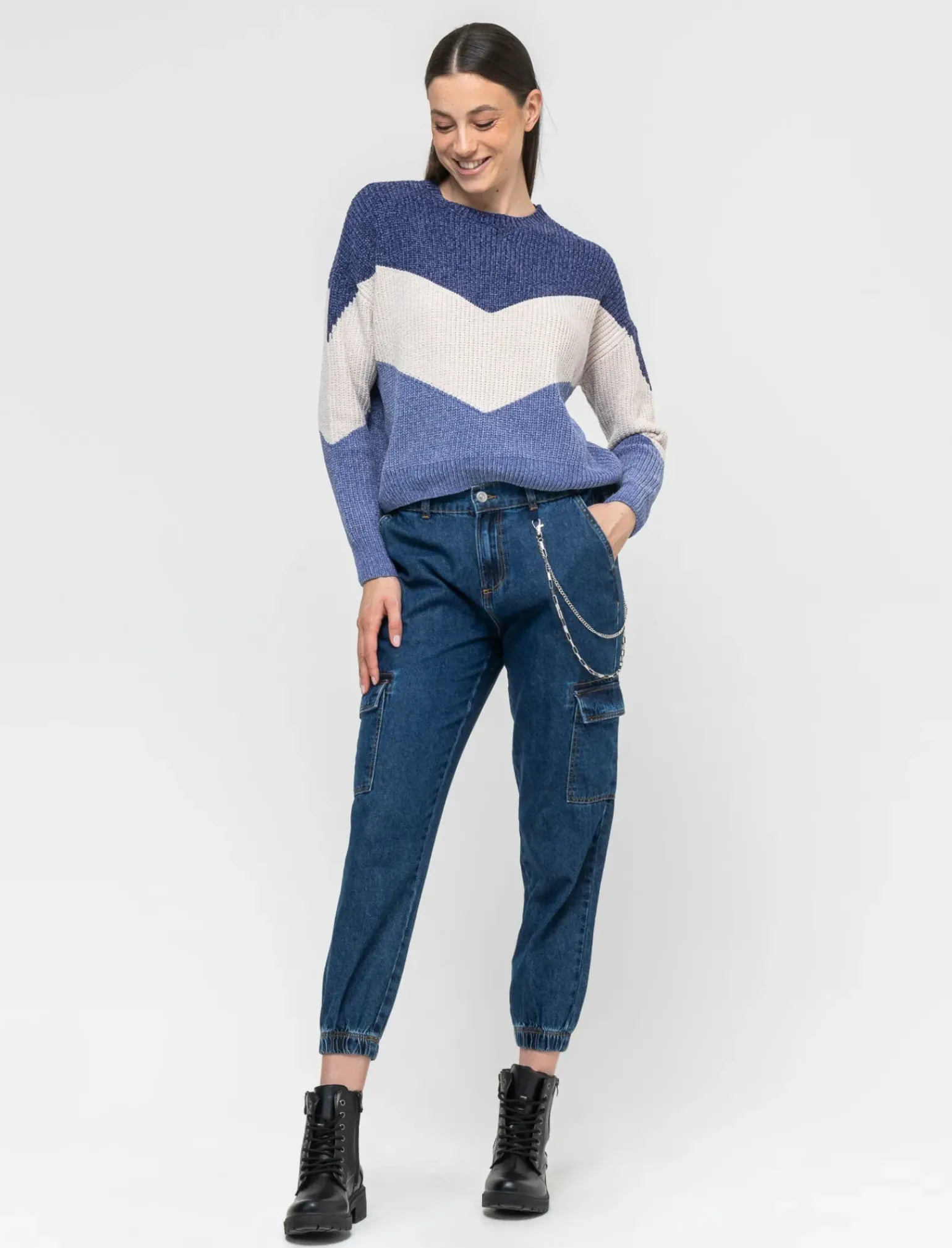 Maglia a righe larghe donna in ciniglia, perfetta per un look casual e trendy. Il modello girocollo con manica a t dona un tocco di originalità, mentre la lavorazione a righe larghe aggiunge un tocco di stile. La vestibilità comoda e i polsi a costine elastiche garantiscono comfort e praticità. Ideale per un outfit versatile e alla moda. Il prodotto è di colore var 3