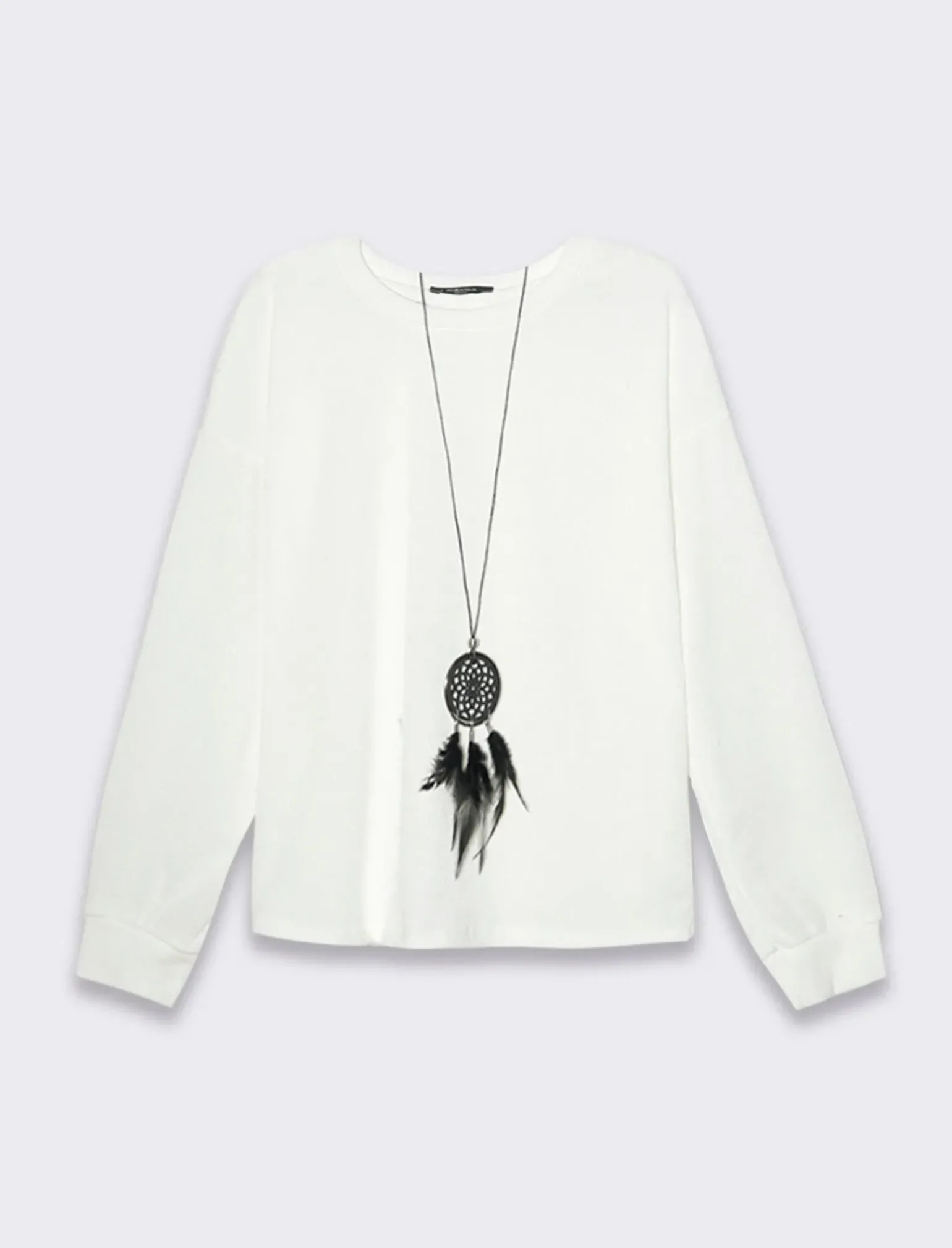 Maglia girocollo con tessuto a coste Il prodotto è di colore Bianco latte