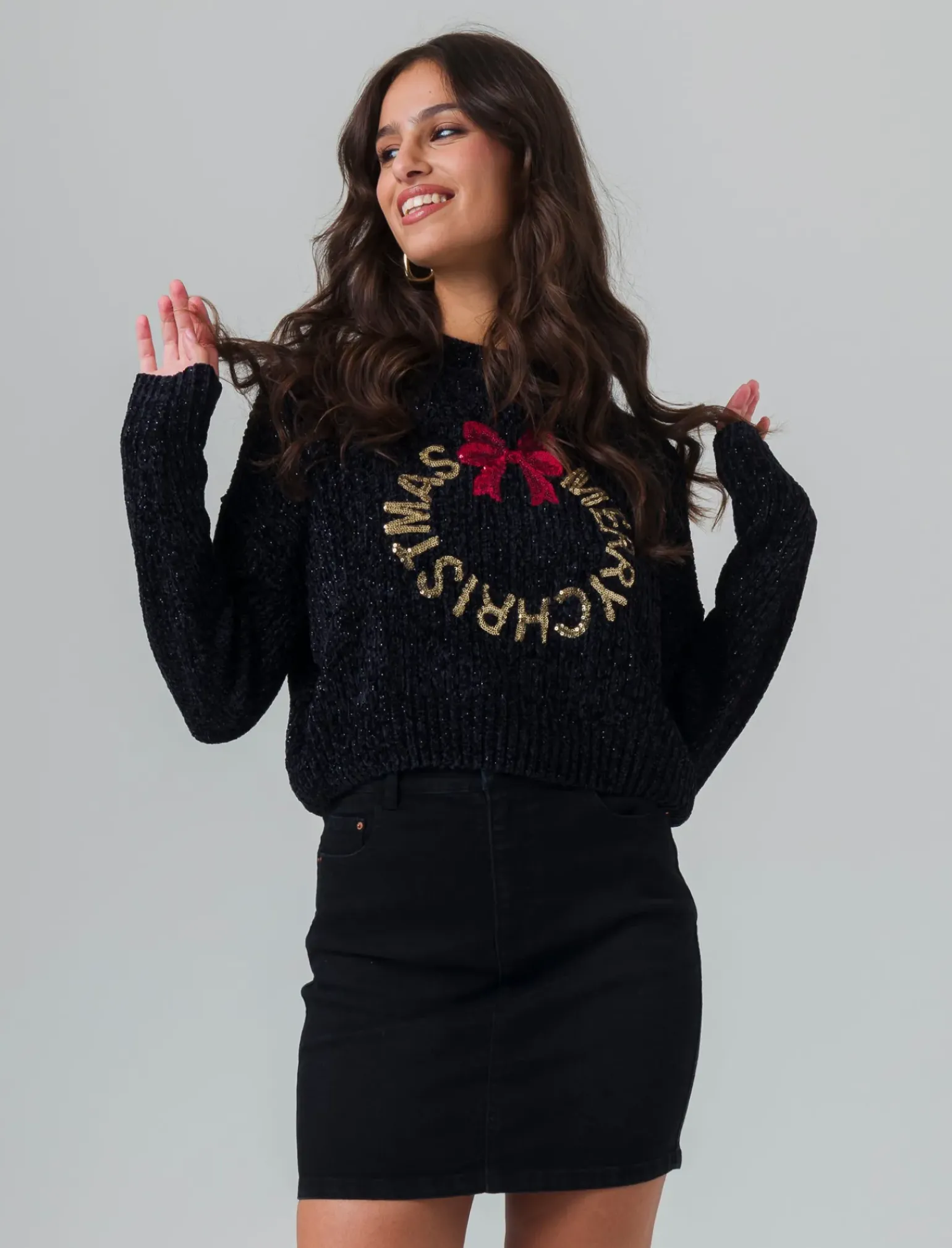 Donna Piazza Italia Maglieria<Maglia in ciniglia manica lunga applicazioni di paillettes e filo metallizzato – var 2