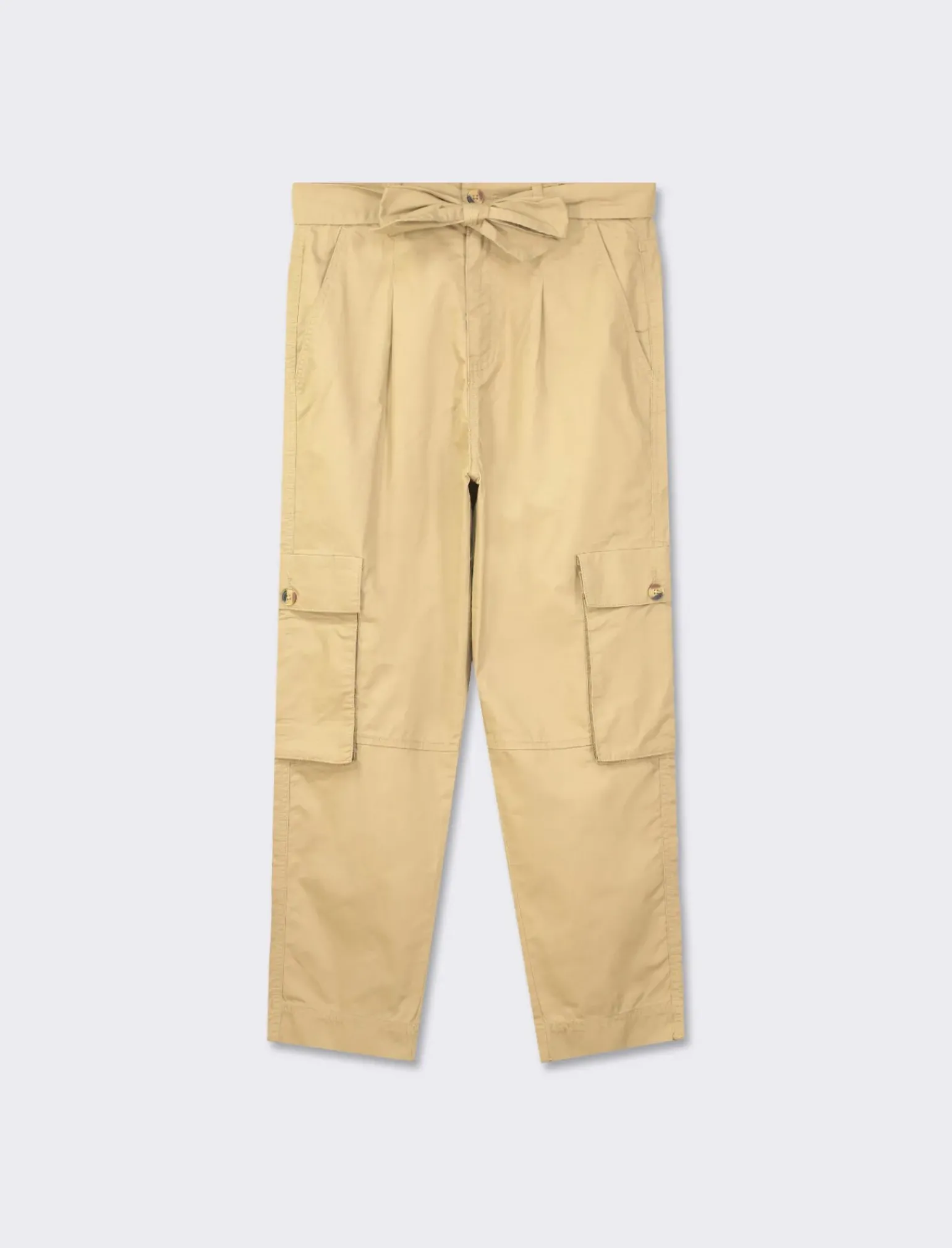 Donna Piazza Italia Pantaloni<Pantalone cargo loose con fusciacca in tessuto fisso – fieno