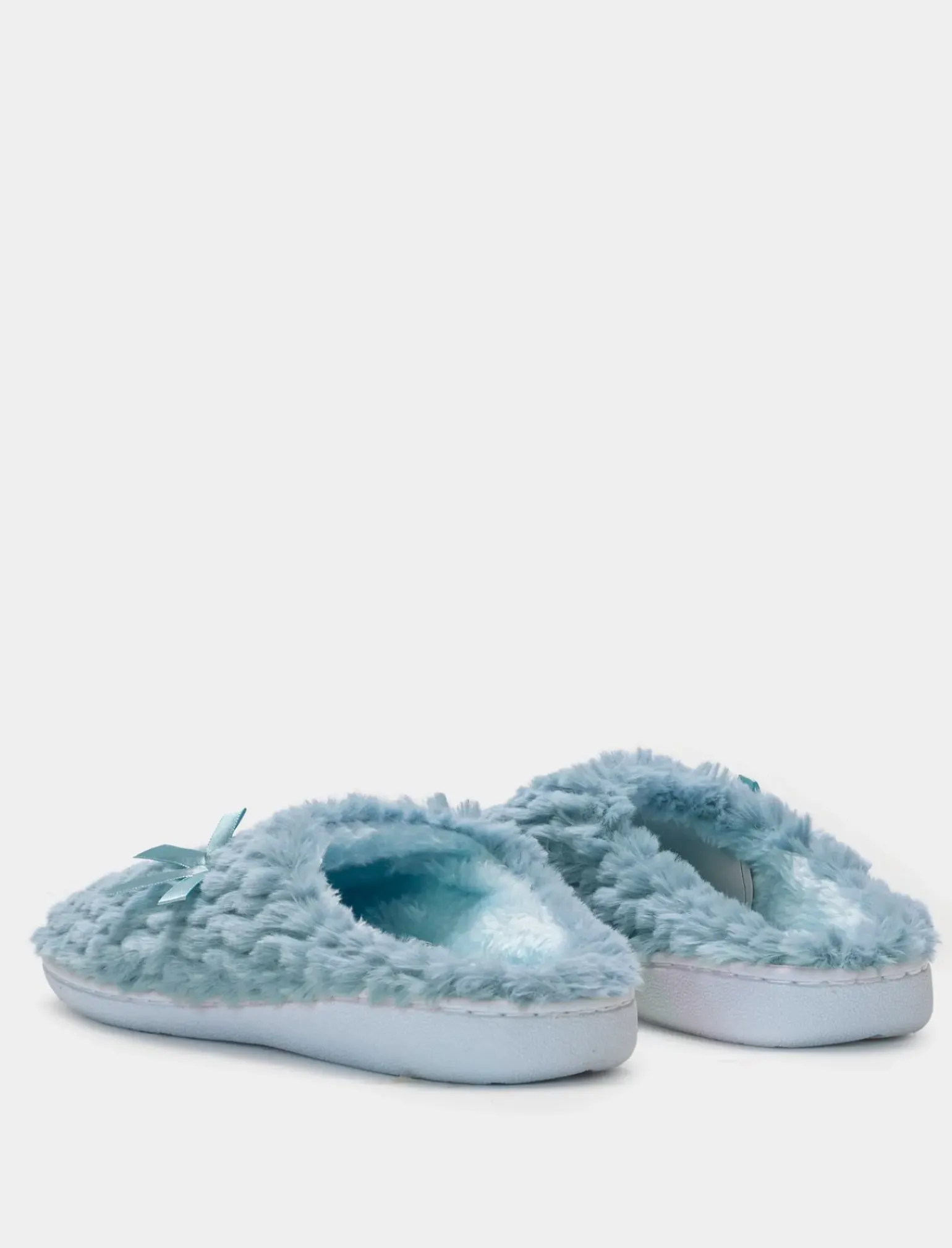Donna Piazza Italia Pantofole<Pantofola in tessuto furry con fiocco e fondo alto – Turchese