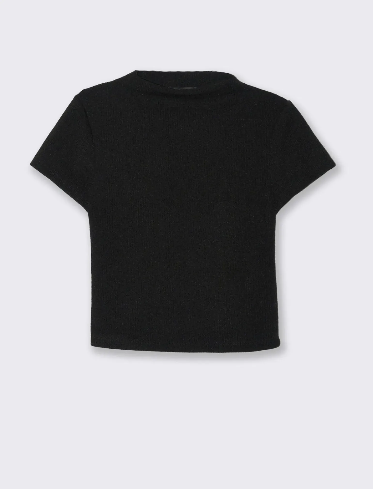 T-shirt a mezza manica, realizzata in un tessuto morbido e confortevole, perfetta per ogni occasione. Questa t-shirt presenta un mezzo collo, che aggiunge un tocco di eleganza e modernità al design. Il mezzo collo è leggermente rialzato, offrendo una sensazione di calore e protezione senza essere troppo ingombrante. Il prodotto è di colore Nero
