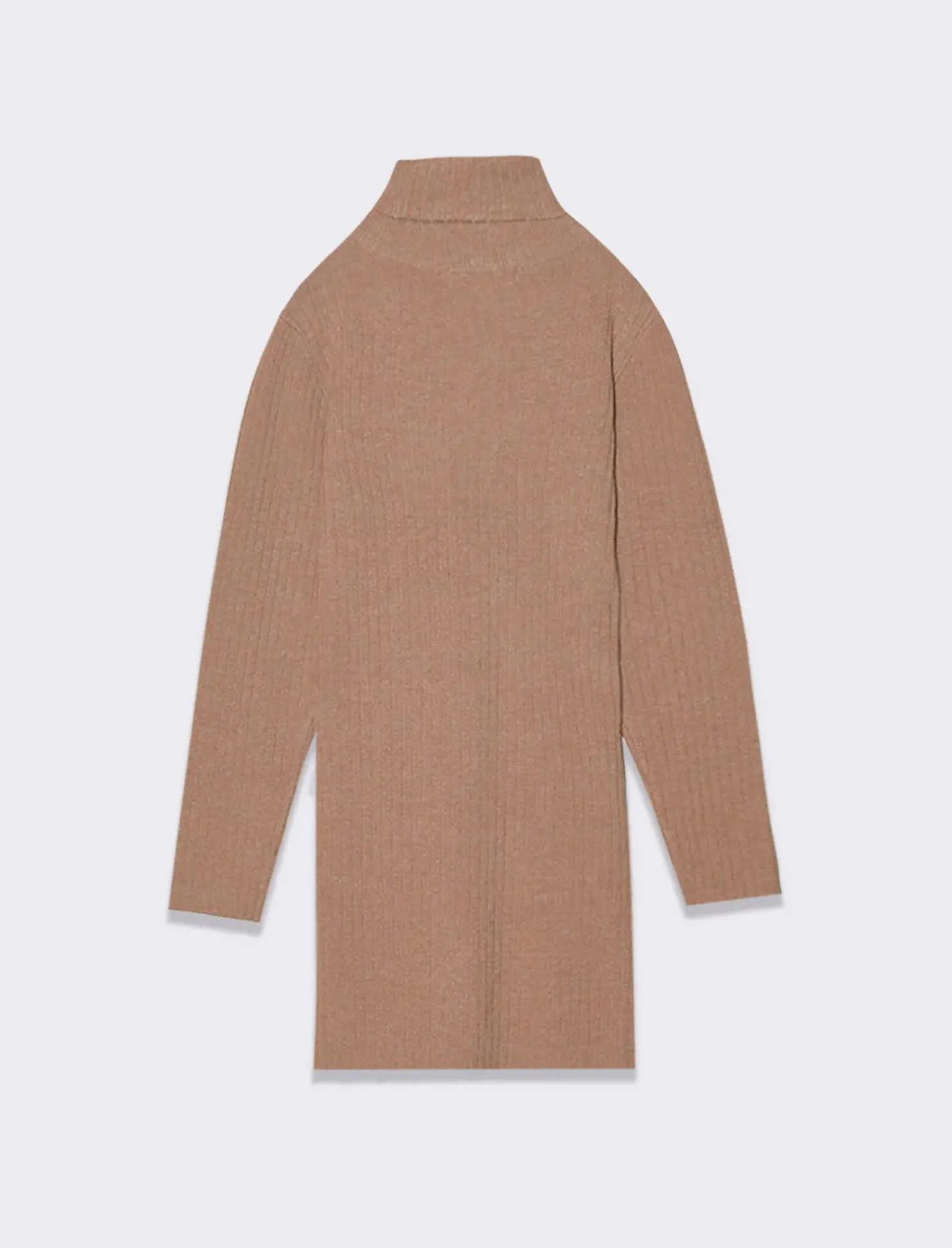 Piazza Italia Abito in maglia collo alto e bottoncini – biscotto Beige New