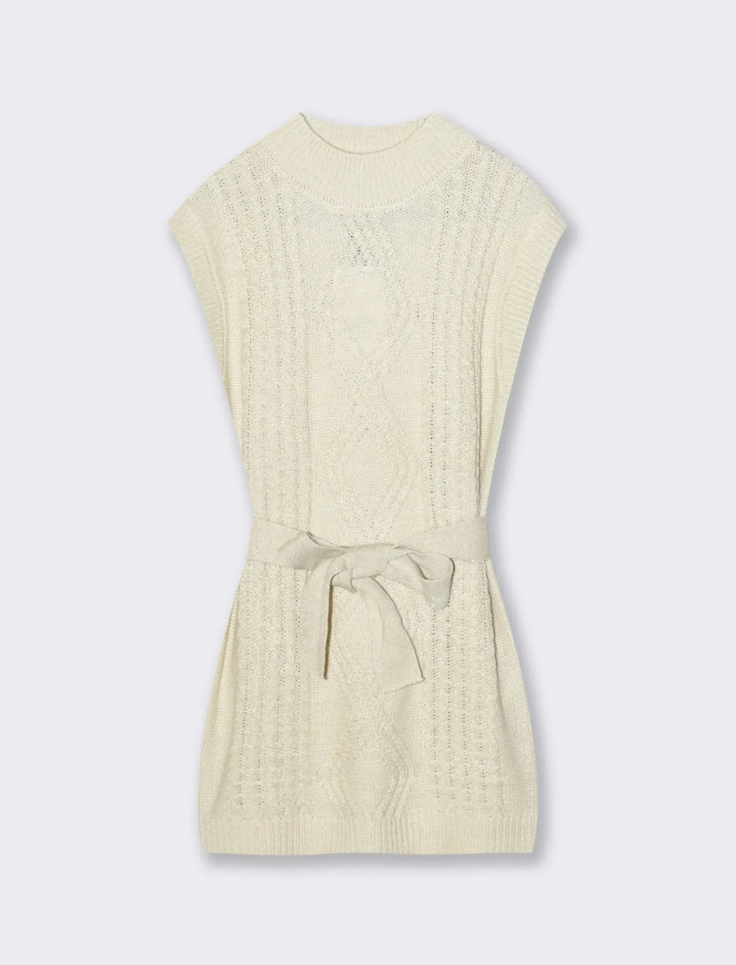 Abito in maglia con dettagli in filo lamè senza maniche con cintura in vita Il prodotto è di colore Beige