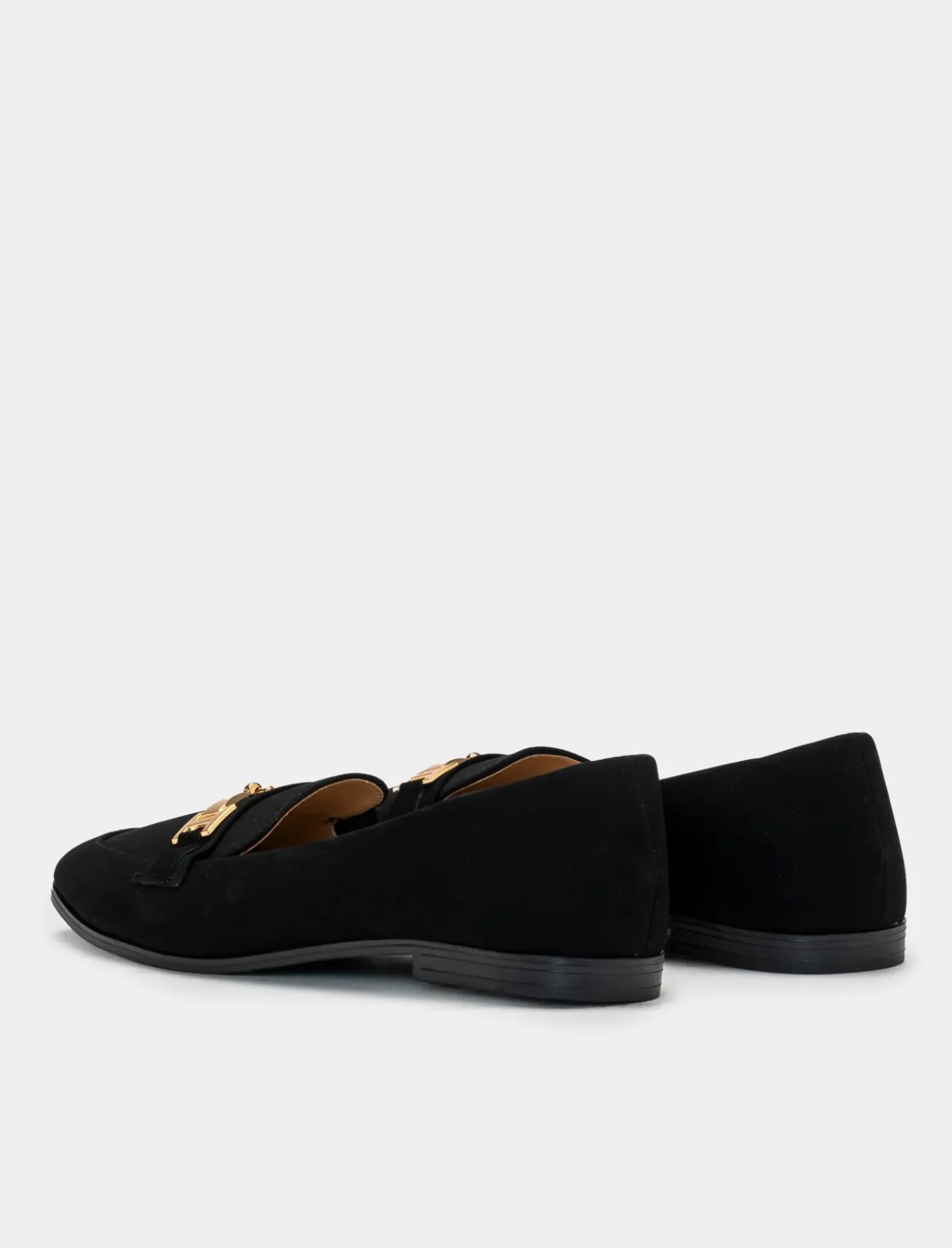 Piazza Italia Ballerina in microfibra nera con morsetto dorato. – Nero Store
