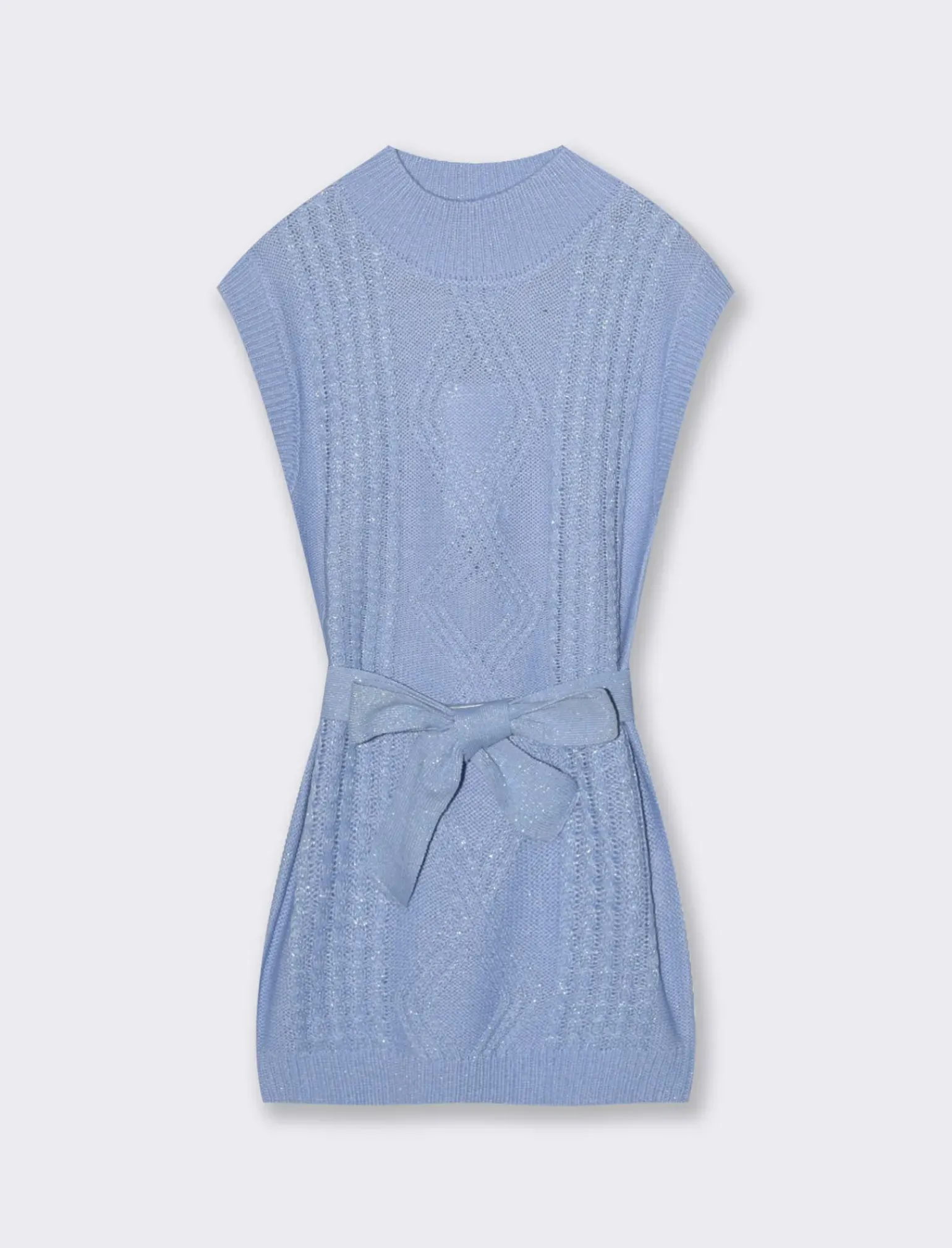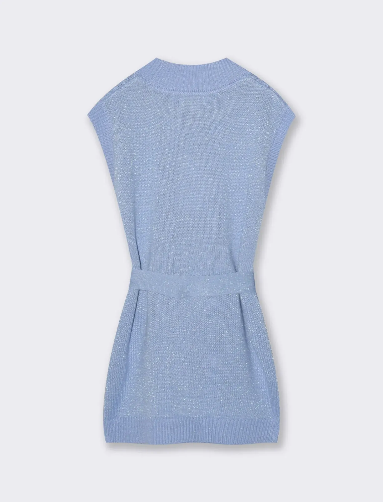 Abito in maglia con dettagli in filo lamè senza maniche con cintura in vita Il prodotto è di colore Azzurro
