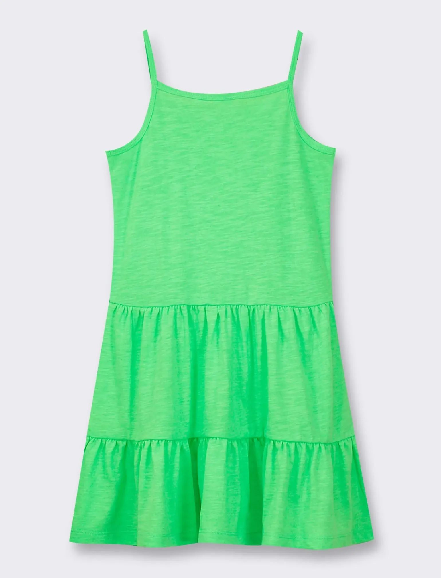 Il vestito a balze in policotone con bretelle sottili e vestibilità ampia è l’abito perfetto per le bambine che amano essere al centro dell’attenzione. Realizzato in jersey fluo, questo abito è ideale per un look estivo e divertente. Con il suo design vivace e colorato, sarà sicuramente l’outfit preferito delle piccole fashioniste. Perfetto per qualsiasi occasione, questo vestito garantisce comodità e stile in ogni momento della giornata. Il prodotto è di colore Verde