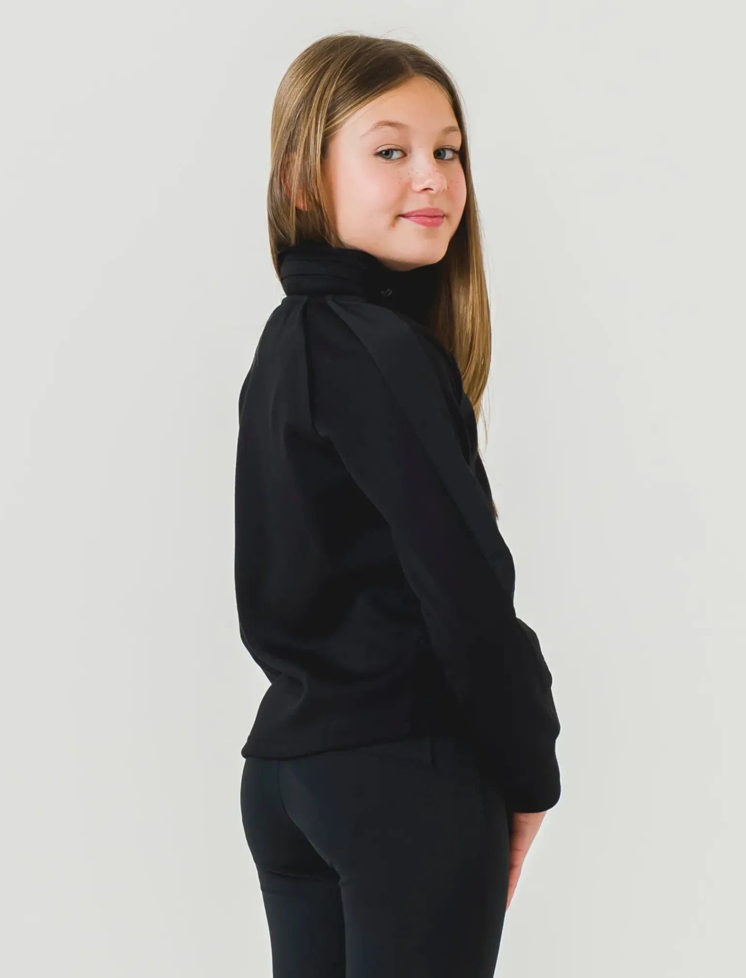 La felpa sportiva da bambina con cappuccio nascosto è l’ideale per un look casual e sportivo. Realizzata in tessuto elasticizzato, garantisce comfort e libertà di movimento. Le tasche anteriori sono pratiche per tenere al sicuro piccoli oggetti, mentre il cappuccio nascosto nel girocollo grazie alla comoda zip aggiunge un tocco di originalità al capo. Gli inserti sulle maniche con tessuto a contrasto e la zip sul davanti completano il look alla moda di questa felpa, perfetta per le piccole fashioniste in erba. Il prodotto è di colore Nero