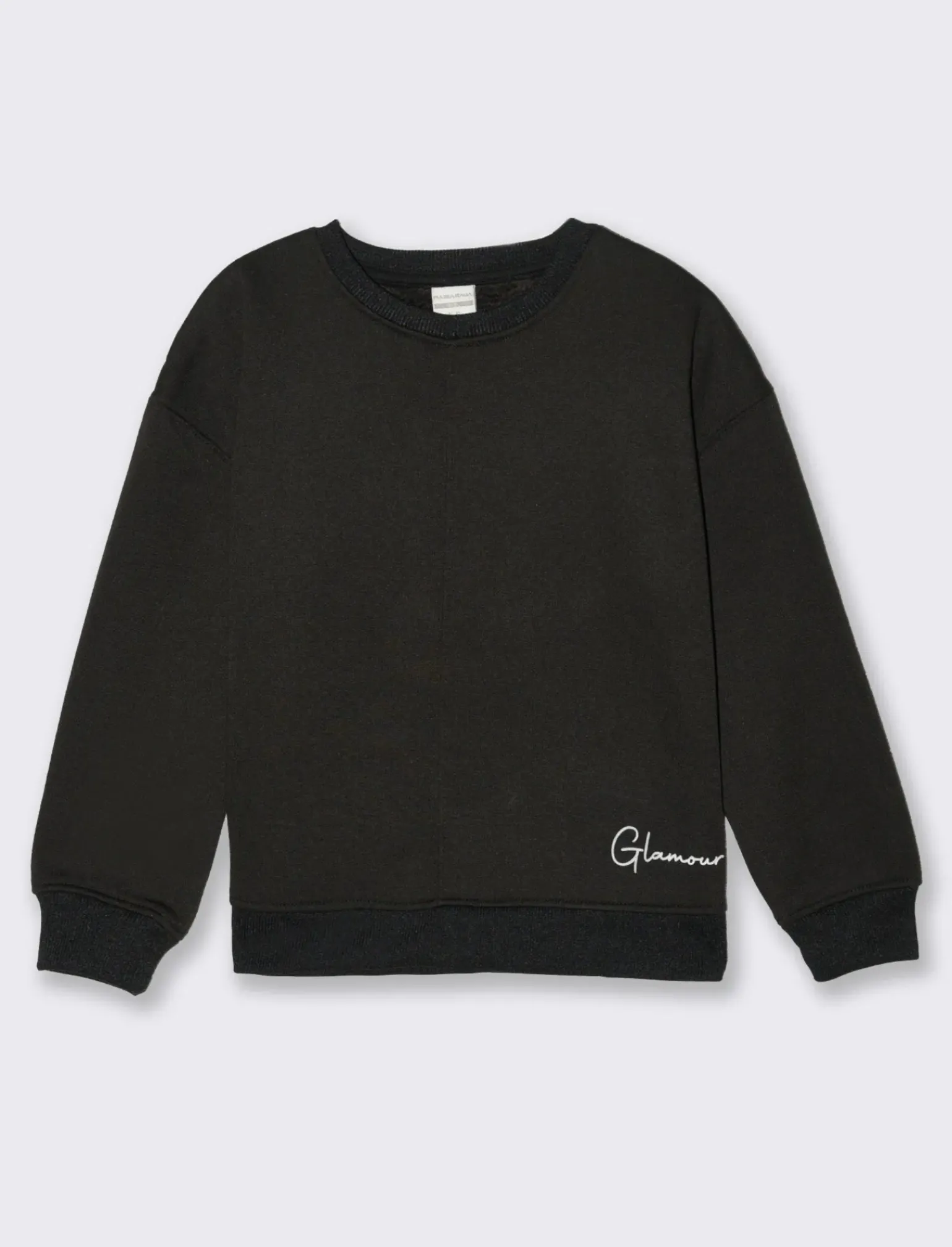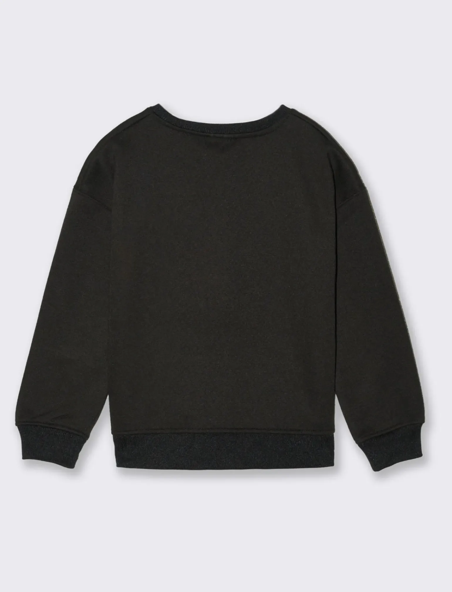Piazza Italia Bambina|Felpe<Felpa girocollo da bambina in mobido cotone – Nero