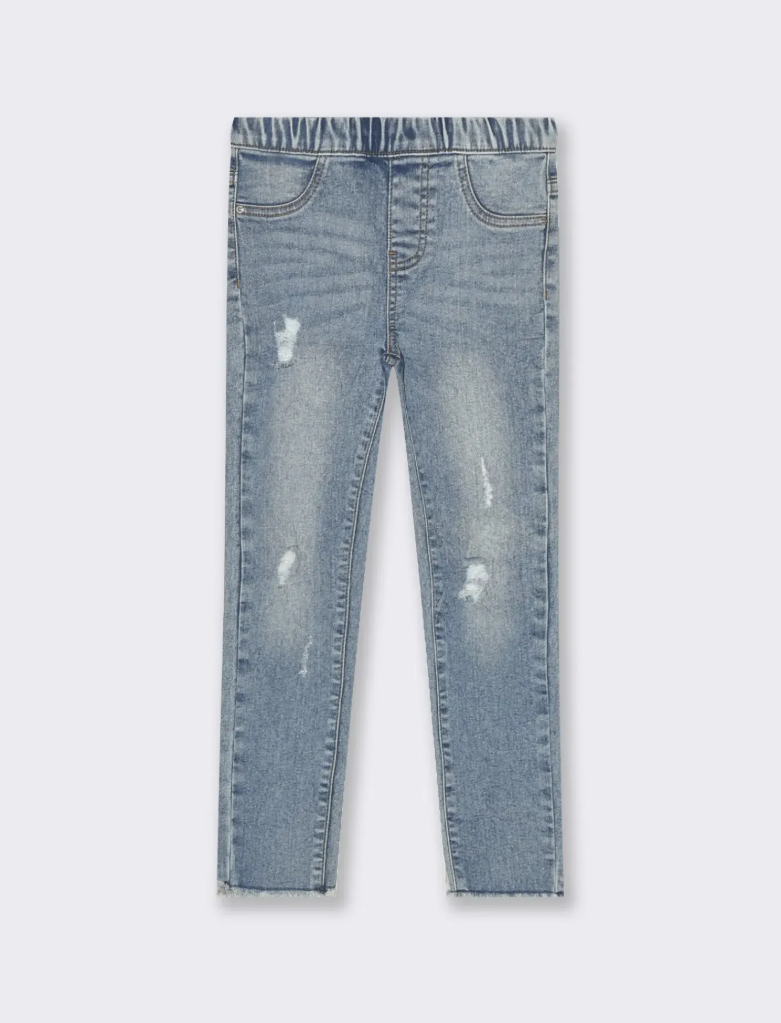 Piazza Italia Bambina|Jeans<Jeggings stretch effetto denim con vita elasticizzata e chiusura e tasche trompe l'oeil – Denim chiaro